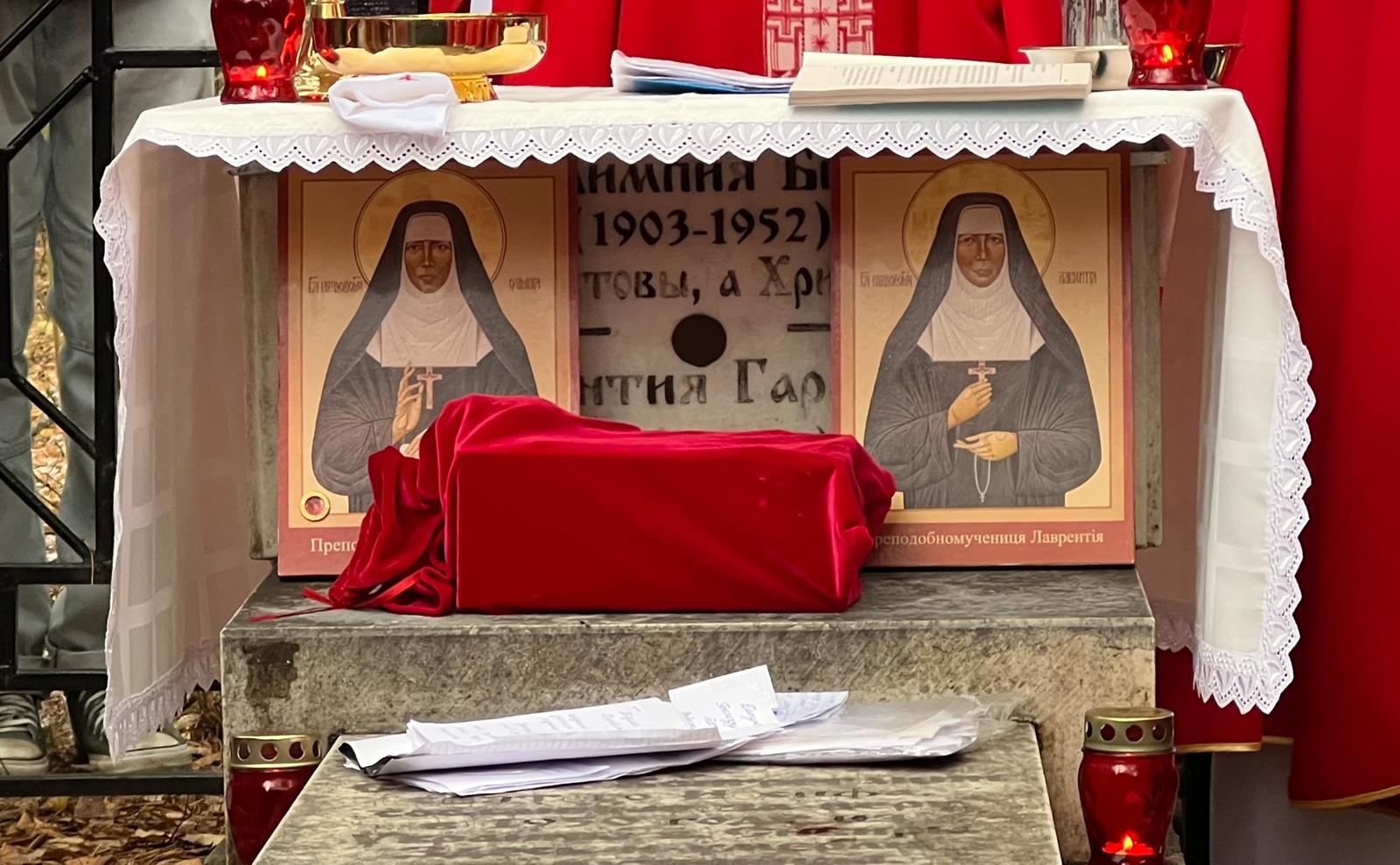 Монахини Олимпия и Лаврентия из Конгрегации Сестер Святого Иосифа Обручника Пресвятой Девы Марии служили Богу и людям в городе Хиров Львовской области в трудные времена советских гонений на религию вообще и Греко-католическую Церковь в частности. В 1950 году они были арестованы органами МГБ и отправлены в бессрочную ссылку в Сибирь. Всего в Сибирь тогда сослали десять монахинь из Конгрегации святого Иосифа. Сестры Олимпия и Лаврентия могли бы избежать ссылки ценой отречения от своего монашеского призвания, однако избрали путь верности Христу и Церкви. Местом их поселения в Сибири стал поселок Харск Молчановского района Томской области. Непосильный труд, тяжелые климатические условия, болезни и отсутствие медицинской помощи вскоре сделали свое дело: сестра Олимпия отошла ко Господу 23 января 1952 года, в возрасте 49 лет, а в августе того же года в возрасте 40 лет за ней последовала и сестра Лаврентия.