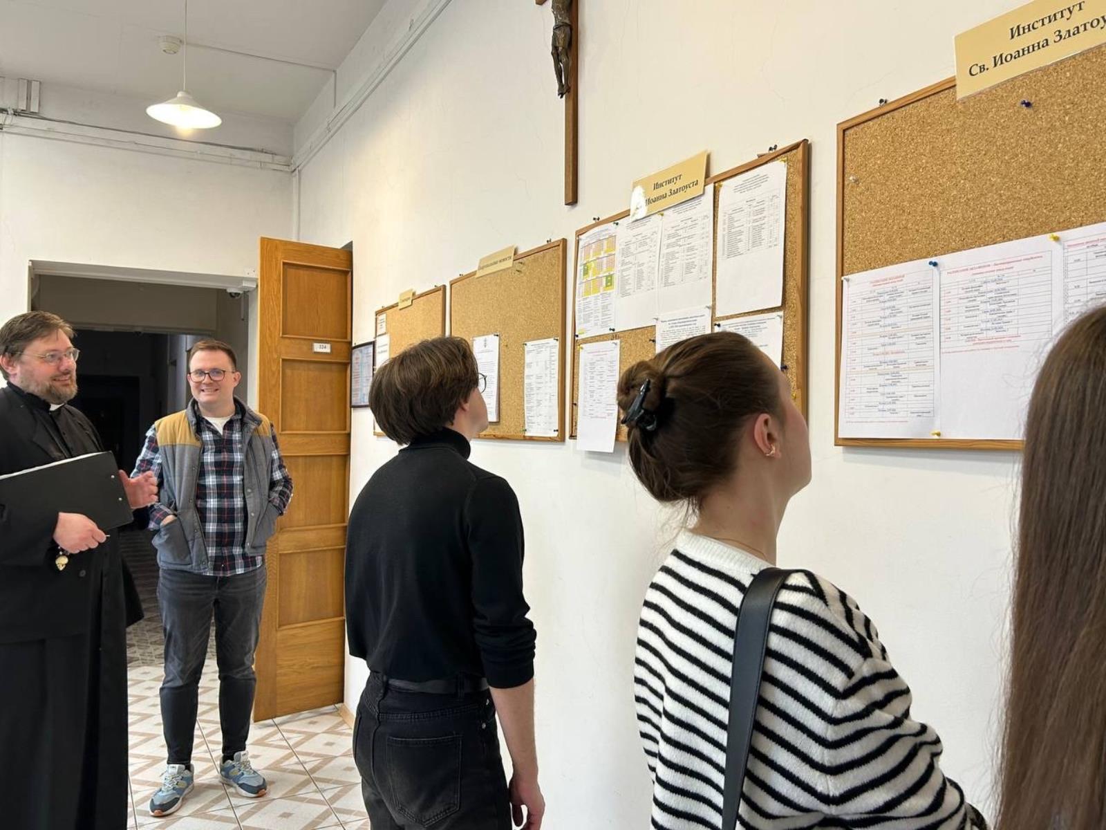 Семинаристы Кирилл Зимин и Дмитрий Калинкин рассказали ребятам об учебном процессе в Институте св. Иоанна Златоуста, формации в Католической семинарии и повседневной жизни семинаристов. Экскурсоводы также показали гостям учебные классы, библиотеку, часовню и другие помещения.