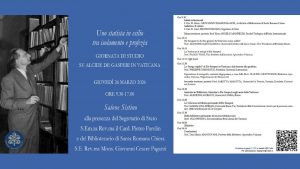 26 марта 2026 года в Ватикане состоится научная конференция под названием «Государственный деятель в изгнании между изоляцией и пророчеством». Форум будет посвящен периоду работы Де Гаспери в Апостольской библиотеке Ватикана во время фашистской диктатуры.