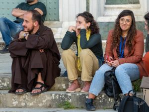 Вместе с молодыми людьми размышляли братья-монахи (в диалоге с ними участвовали кустод Святой Земли о. Франческо Иельпо, OFM и проповедник Папского дома о. Роберто Пазолини, OFMcap), сёстры-монахини, а также представители мира искусства и культуры, политические и общественные деятели.