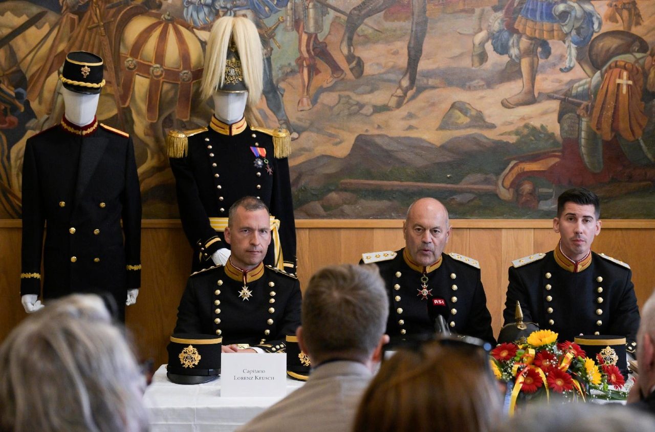 Обновленная парадная форма была представлена в казармах Швейцарской гвардии 2 октября 2025 года. Мероприятие состоялось накануне приведения к присяге 27 новобранцев, прошедшего 4 октября 2025 года. Новая форма не заменит знаменитую цветную парадную форму, а заполнит пробел между повседневной и почетной униформой.