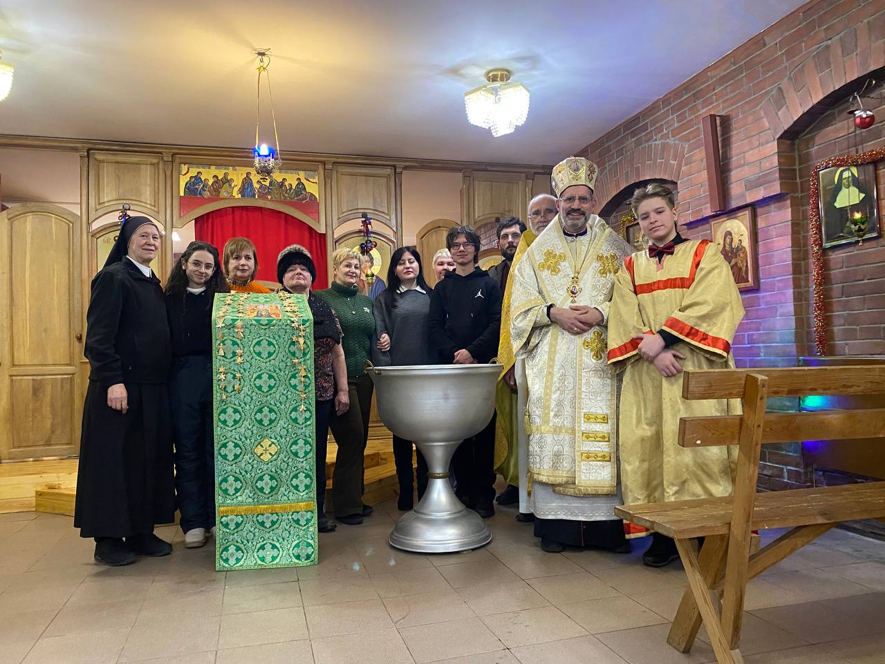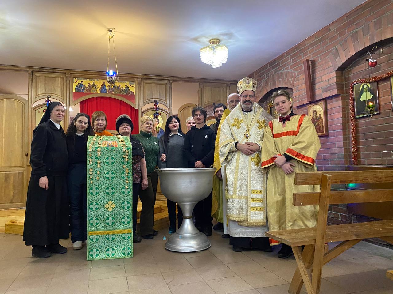 Пока богослужения в новосибирском приходе византийского обряда проходят нерегулярно, но всё же по большим праздникам община обязательно старается собраться, чтобы вместе совершить молитву и достойно отпраздновать торжество. Вот и великий праздник Крещения Господа Бога и Спаса нашего Иисуса Христа, который по юлианскому календарю отмечается 19 января (6 января – по ст. стилю) собрал в понедельник на молитву небольшую группу верных (поскольку был будний день).