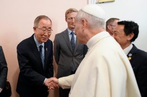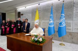 Папа напомнил, что во время нынешних войн и конфликтов вновь возникла практика использования продовольствия в качестве оружия: там, где должны заботиться о хлебе насущном, его отсутствие используют для наказания и подчинения. Таким образом рушится весь труд ФАО за восемьдесят лет, направленный на то, чтобы пробудить в человечестве чувство ответственности за питание как за основное право каждого. Папа с горечью отметил: тот консенсус, который существовал среди и когда-то признавал умышленное обречение на голод и блокировку доступа к пище военным преступлением, сегодня становится всё более зыбким.