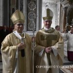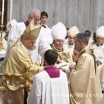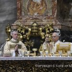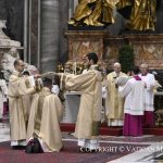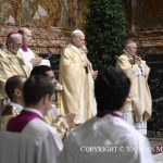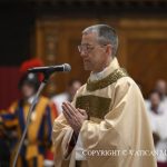 «Сегодня Церковь Рима радуется вместе со Вселенской Церковью, торжествуя о даре нового епископа», — сказал в проповеди Папа, остановившись в особенности на девизе новопосвященного иерарха: «Богу слава, людям — мир». Речь идет о целой программе жизни: «Всегда стремиться к тому, чтобы Божья слава сияла в мире между людьми».