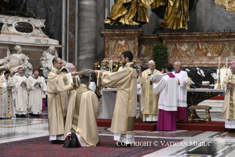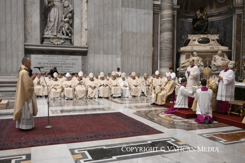 «Сегодня Церковь Рима радуется вместе со Вселенской Церковью, торжествуя о даре нового епископа», — сказал в проповеди Папа, остановившись в особенности на девизе новопосвященного иерарха: «Богу слава, людям — мир». Речь идет о целой программе жизни: «Всегда стремиться к тому, чтобы Божья слава сияла в мире между людьми».