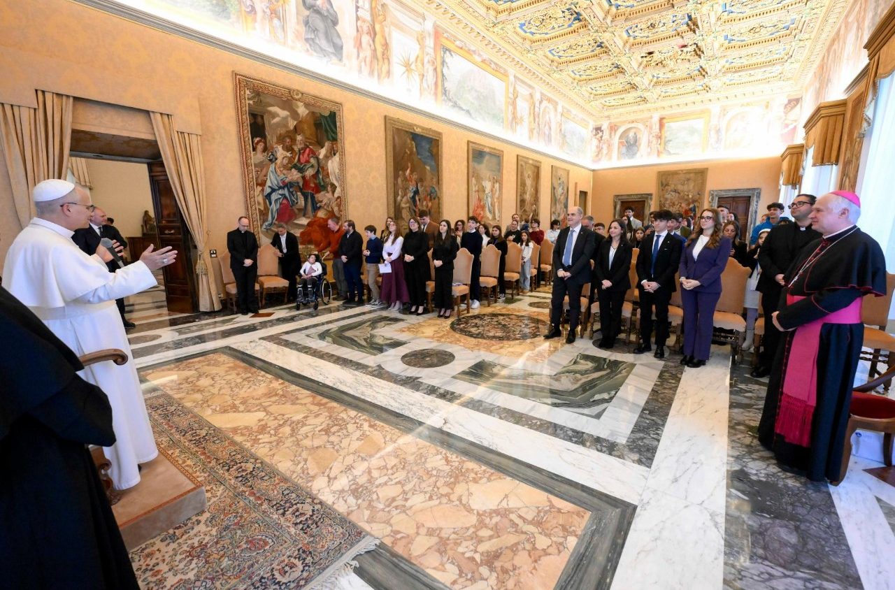 В завершение встречи Папа подчеркнул, что стремление к миру — это подлинное «католическое действие», которое делает нас свидетелями Иисуса, Искупителя мира. Епископ Рима сердечно пожелал подросткам и их семьям радости Рождества и внутреннего мира, преподав апостольское благословение.