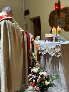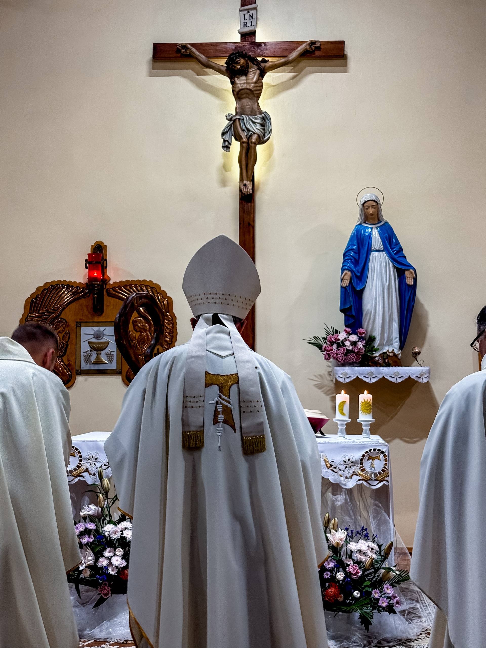 Его Преосвященству сослужили сразу три настоятеля: отец Виталий Костюк OFM (настоятель францисканского прихода), отец Коррадо Трабукки OFM (настоятель Крестовоздвиженской монастырской обители) и отец Альфредо Фекондо FSCB (настоятель приходов в Бердске и Академгородке).