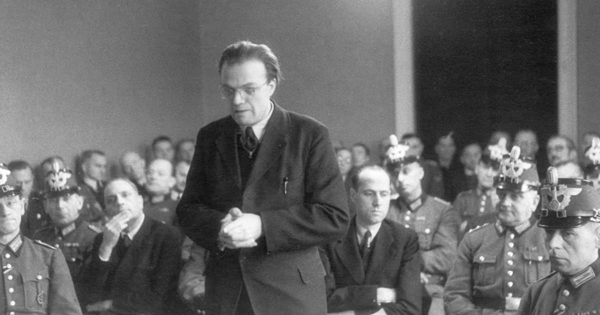 В январе 1945 года состоялся суд над о. Дельпом и некоторыми его единомышленниками, в том числе и протестантами, на котором председательствовал пресловутый «кровавый судья» Роланд Фрайслер. Он систематически унижал обвиняемых, кричал на них и уже после двух дней принял решение: казнить.