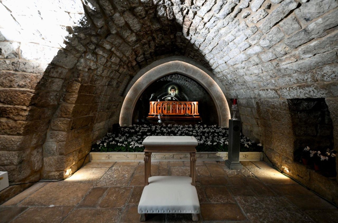 Святейший Отец прошёл к пещере-усыпальнице святого Шарбеля, где преклонил колени в молитвенном молчании и зажёг лампаду — символ света Христова, который, как он отметил, «Господь зажёг здесь через святого Шарбеля».