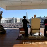 Святейший Отец отметил, что вера в смерть и воскресение Христа вселяет надежду и побуждает «вкладываться в добро». Она помогает взращивать братство, один из величайших вызовов для человечества, как это ясно видел его предшественник Папа Франциск. Братство укоренено в самой природе человека: наша способность строить отношения с другими является условием для подлинного жизненного роста и человечности. Эта полнота раскрывается, когда мы живём во взаимной связи, а не замкнуто. И наоборот, закрытость ведёт к недугам одиночества и нарциссизма, при котором другой человек низводится до объекта потребления.