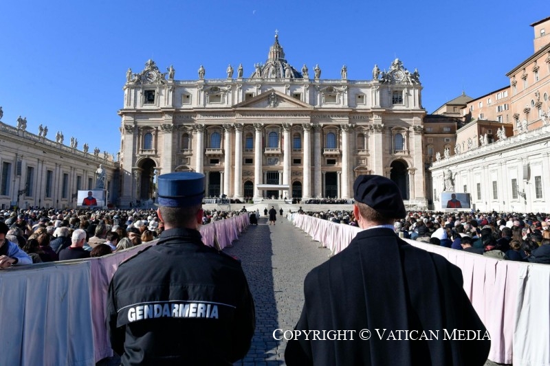Святейший Отец отметил, что вера в смерть и воскресение Христа вселяет надежду и побуждает «вкладываться в добро». Она помогает взращивать братство, один из величайших вызовов для человечества, как это ясно видел его предшественник Папа Франциск. Братство укоренено в самой природе человека: наша способность строить отношения с другими является условием для подлинного жизненного роста и человечности. Эта полнота раскрывается, когда мы живём во взаимной связи, а не замкнуто. И наоборот, закрытость ведёт к недугам одиночества и нарциссизма, при котором другой человек низводится до объекта потребления.