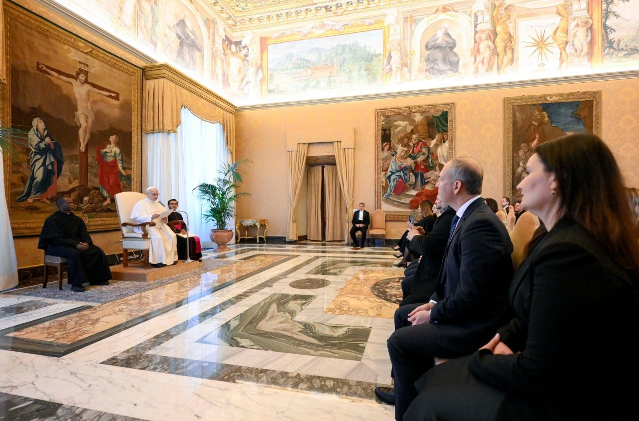 В конце аудиенции Епископ Рима заверил гостей в молитве, воззвав к Богу о мудрости, радости и мире для них и для их семей, и преподал апостольское благословение.