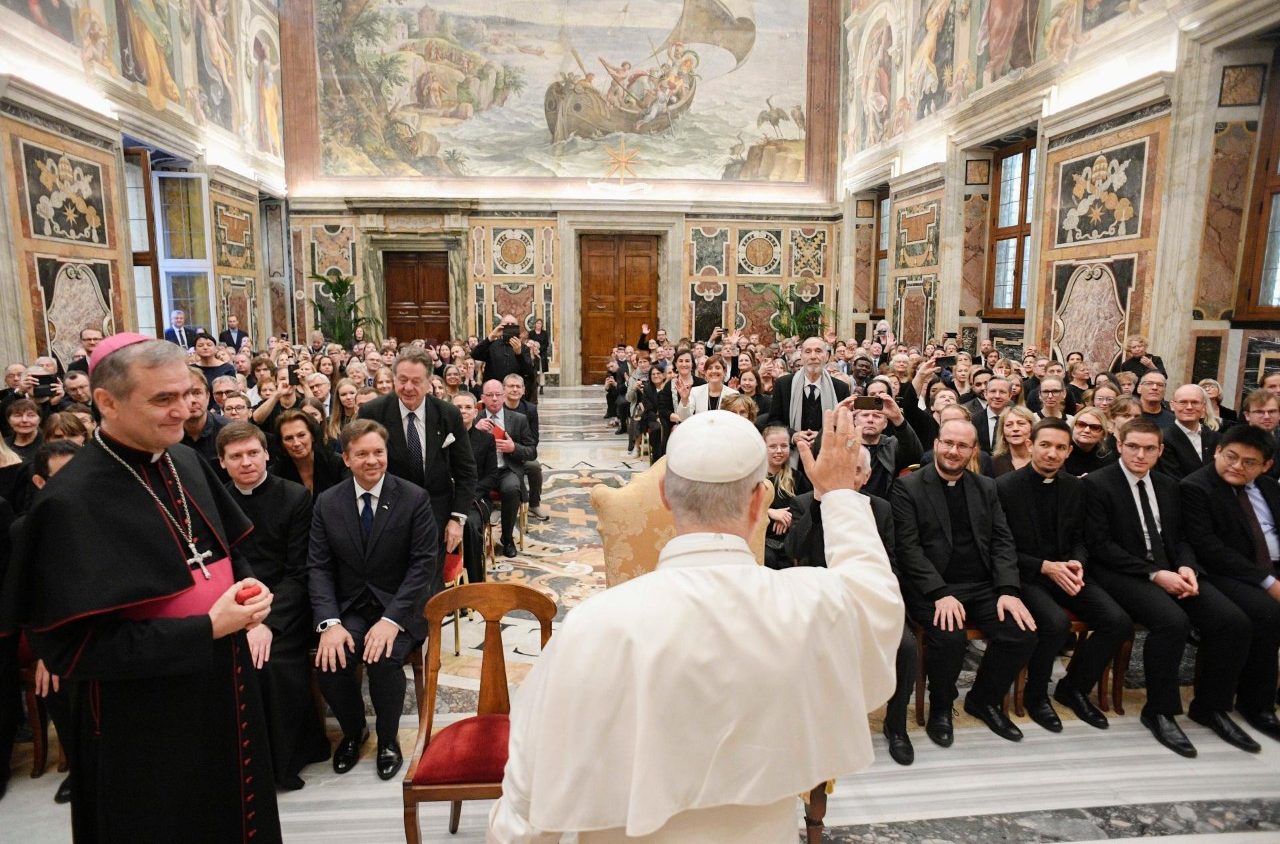 Папа напомнил о важной вехе в истории эстонского католичества – возведении поместной Церкви в статус епархии спустя столетие после создания апостольской администратуры и почти через пять веков после упразднения епископской кафедры в Таллине. Он призвал гостей молиться друг за друга и особенно об их епископе Филиппе Журдене, дабы вера эстонских католиков укреплялась в единстве, привлекала новых верующих, а узы поместной Церкви с Преемником св. Петра становились всё теснее.