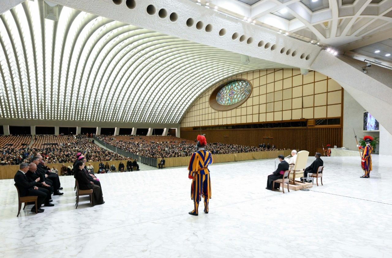 «Сегодня мы не будем говорить о работе», — сказал Папа, обращаясь к сотрудникам, которых тем не менее поблагодарил и добавил: