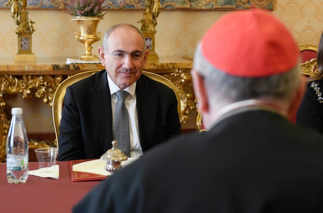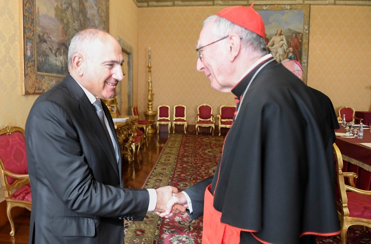 Официальный визит армянского политика в Ватикан продолжился переговорами в Госсекретариате, где он встретился с госсекретарем кардиналом Пьетро Паролином и с секретарем по связям с государствами и международными организациями Полом Ричардом Галлахером.