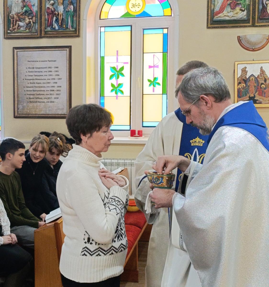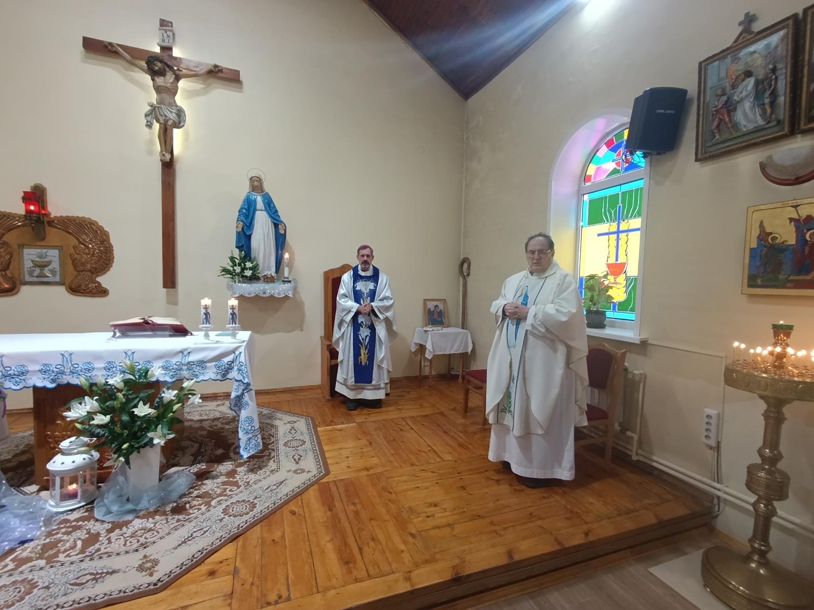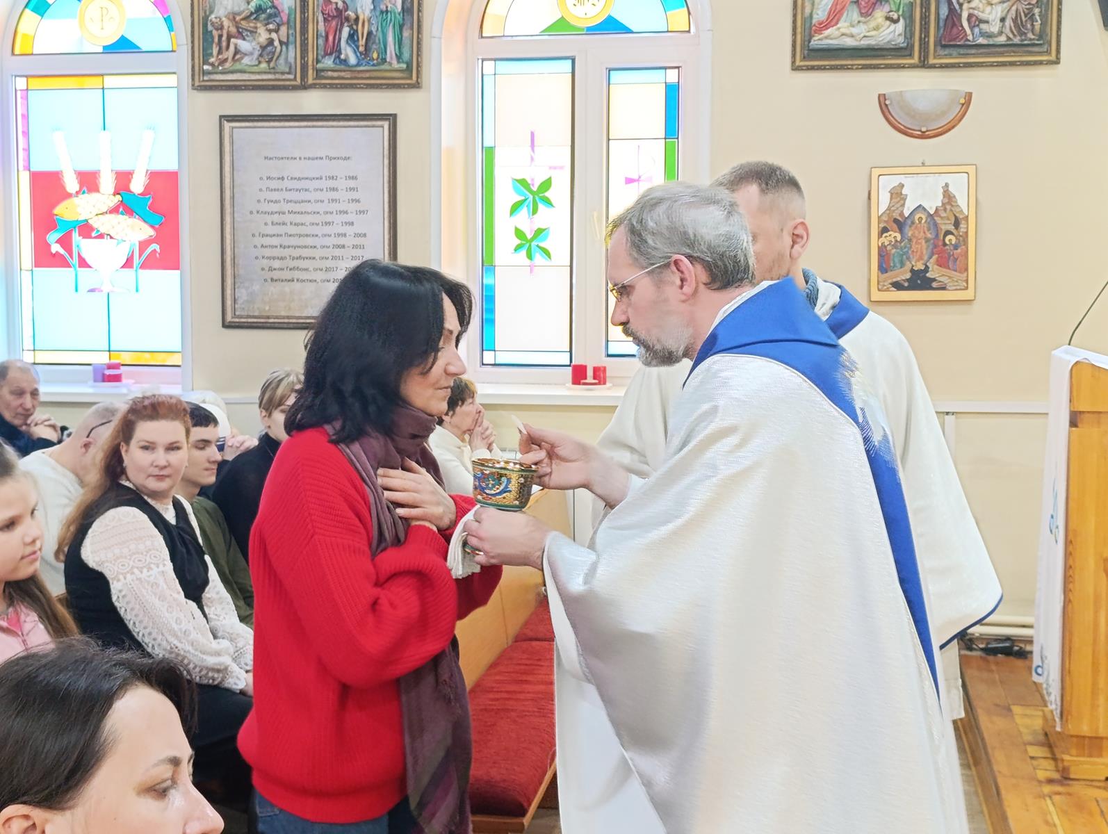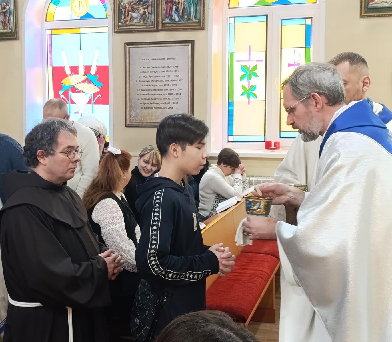 Святую Мессу возглавил вспомогательный епископ Преображенской епархии монс. Штефан Липке SJ. Преосвященному Владыке сослужили хозяева прихода – о. Виталий Костюк OFM (настоятель) и о. Коррадо Трабукки OFM (викарий, одновременно являющийся настоятелем местной монастырской общины францисканцев).