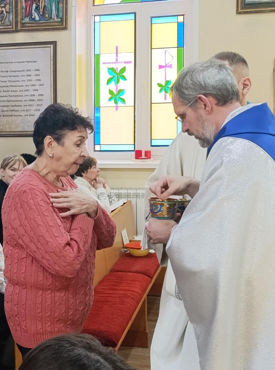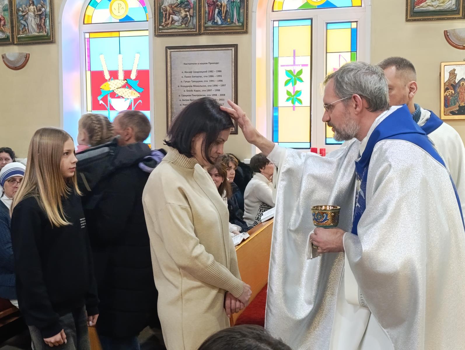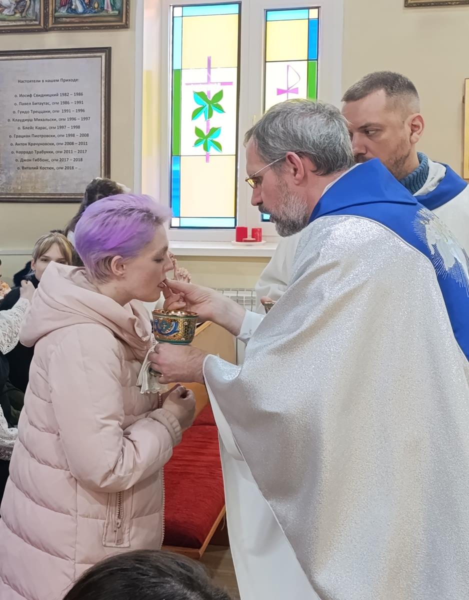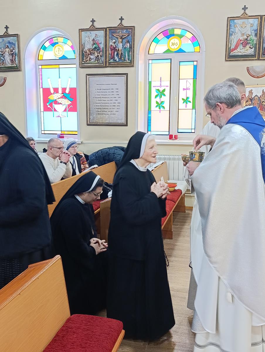 Святую Мессу возглавил вспомогательный епископ Преображенской епархии монс. Штефан Липке SJ. Преосвященному Владыке сослужили хозяева прихода – о. Виталий Костюк OFM (настоятель) и о. Коррадо Трабукки OFM (викарий, одновременно являющийся настоятелем местной монастырской общины францисканцев).