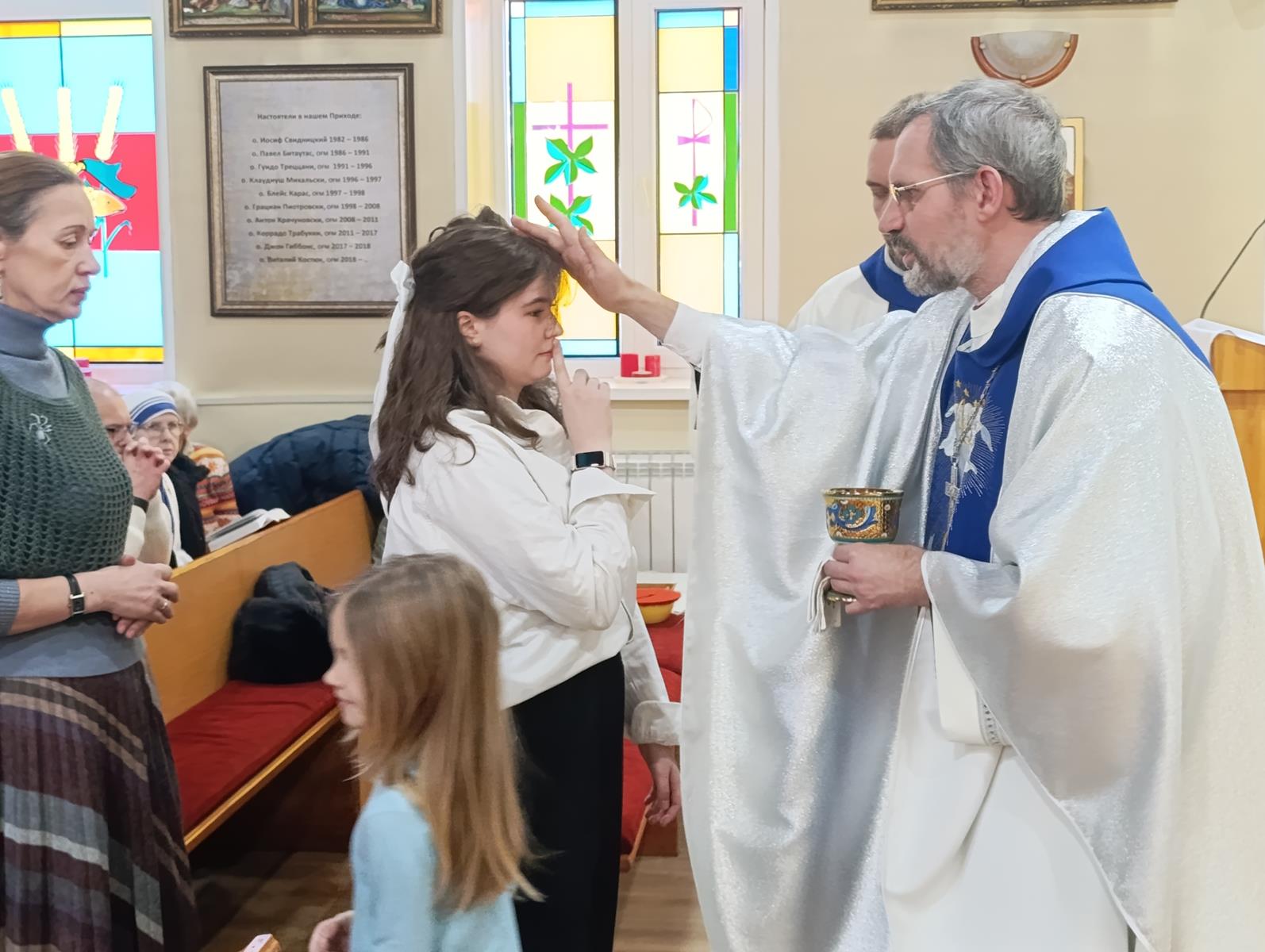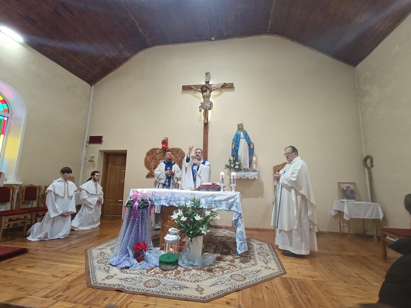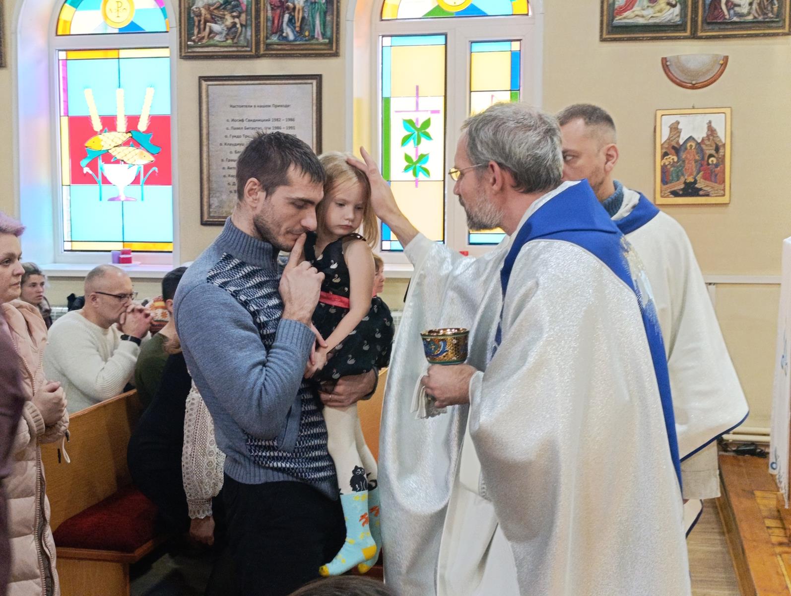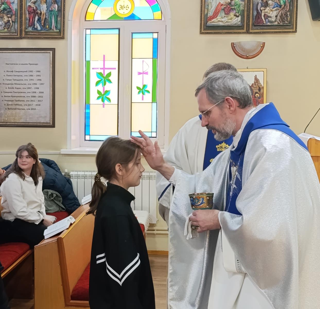 Святую Мессу возглавил вспомогательный епископ Преображенской епархии монс. Штефан Липке SJ. Преосвященному Владыке сослужили хозяева прихода – о. Виталий Костюк OFM (настоятель) и о. Коррадо Трабукки OFM (викарий, одновременно являющийся настоятелем местной монастырской общины францисканцев).
