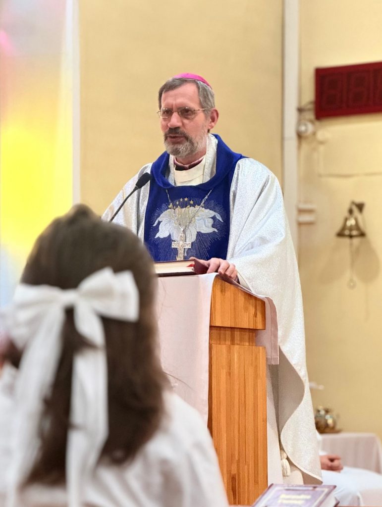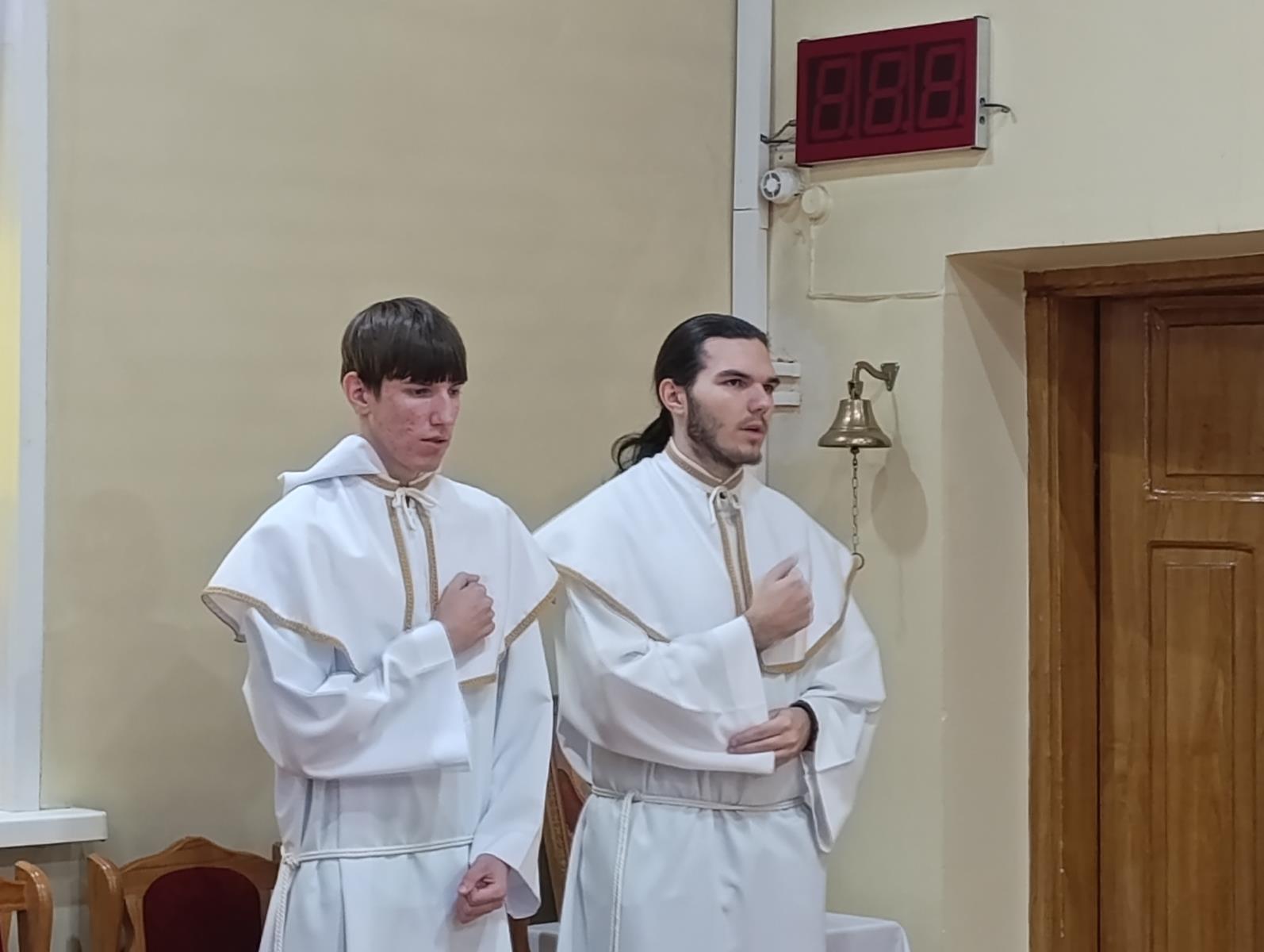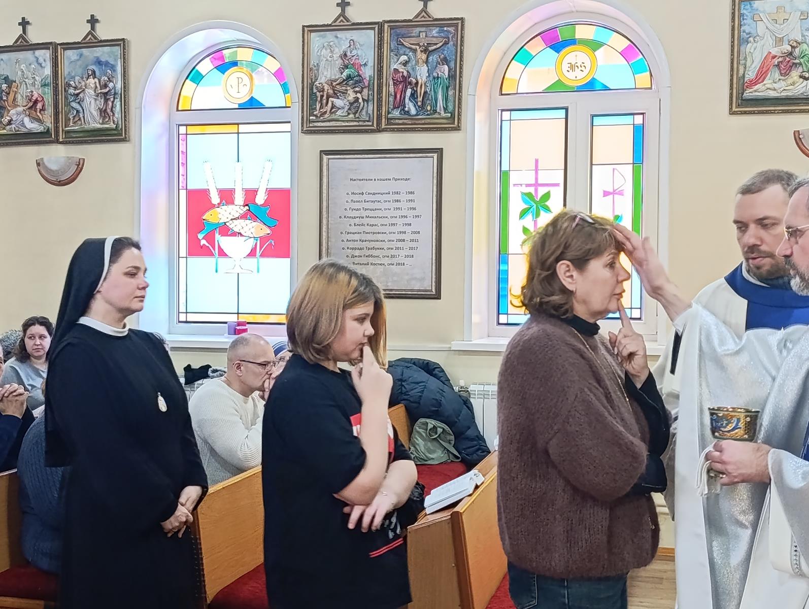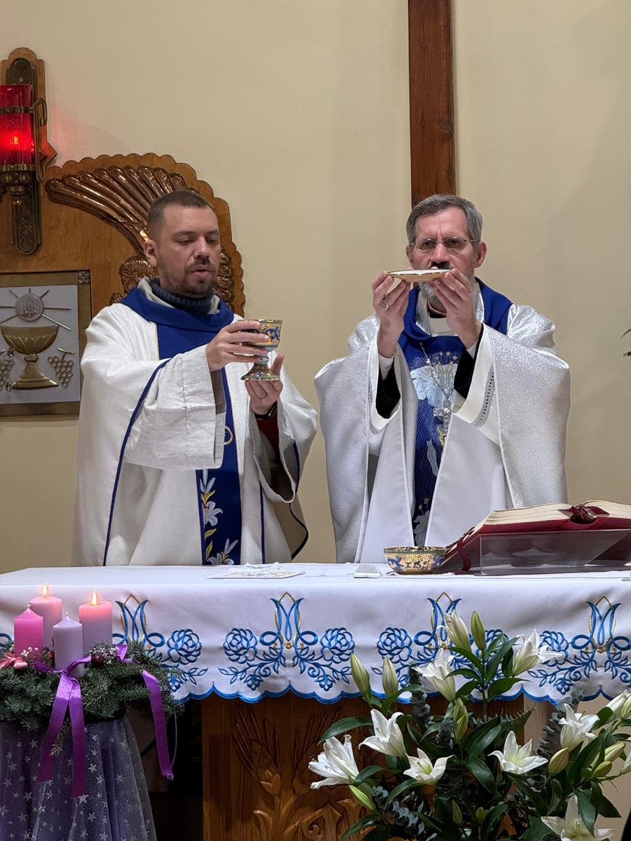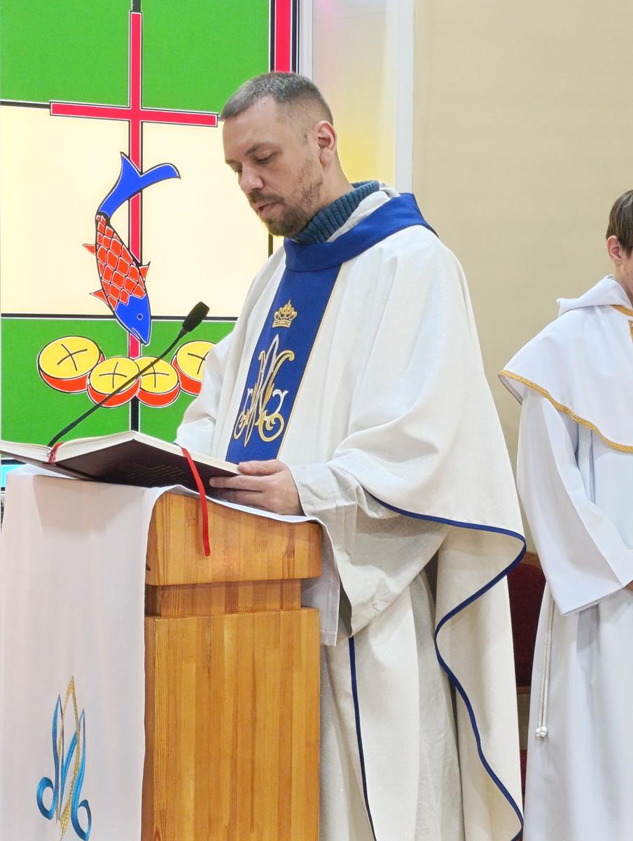 Святую Мессу возглавил вспомогательный епископ Преображенской епархии монс. Штефан Липке SJ. Преосвященному Владыке сослужили хозяева прихода – о. Виталий Костюк OFM (настоятель) и о. Коррадо Трабукки OFM (викарий, одновременно являющийся настоятелем местной монастырской общины францисканцев).