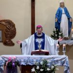 В своей проповеди Его Преосвященство напомнил историю праздника Непорочного Зачатия Пресвятой Девы Марии. Он обратил внимание слушателей на то, что признания догмата о зачатии Марией Иисуса без первородного греха столетиями добивались короли Испании. В 1769 году, после смерти Папы Климента XIII, испанский король настаивал, чтобы следующий Папа сделал две вещи: во-первых, провозгласил догмат о непрочном зачатии, а во-вторых, запретил орден иезуитов. Второе состоялось быстро, а первое – только через 80 лет. Также Владыка напомнил, что первым крупным богословом, настаивавшим на данном догмате, был блаженный Иоанн Дунс Скот, францисканец. Таким образом, желание объявить зачатие Марии непрочным объединило и королей Испании, и францисканцев на довольно продолжительный период. А провозглашён был этот догмат в 1854 году, когда уже вообще нельзя было говорить о серьезном влиянии испанских монархов на Церковь. И тут сыграло роль событие глубоко духовное, уже не связанное лишь с одними францисканцами, но со всем народом Божьим. И нашло такое мощное подтверждение спустя четыре года во время явления Богородицы святой Бернадетте Суберу в Лурде. Несмотря на полемику по поводу этого догмата католиков с православными, в самой Православной Церкви также явно ощущают красоту положения о чистоте и непорочности Марии, ведь неслучайно Её именуют Пречистой Девой. И, по сути, можно сказать, что это нас как раз объединяет.