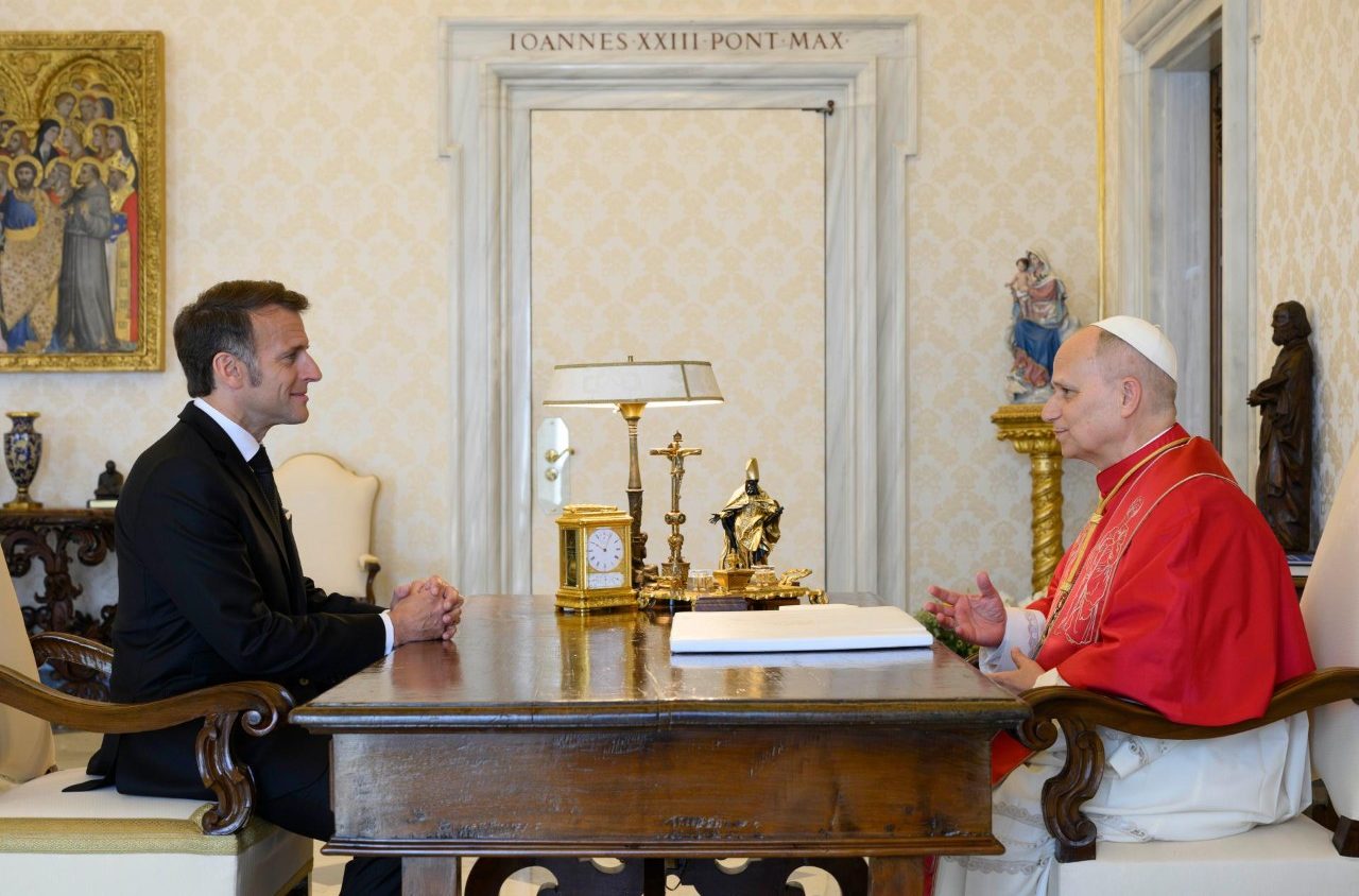 В Ватикане главу Французской Республики встречал регент Папского дома монсеньор Леонардо Сапиенца. Церемония приветствия состоялась в Зале Малого трона. Впервые Папа Превост и президент Франции провели личную встречу; ранее Макрон трижды бывал в Ватикане и общался с Папой Франциском.