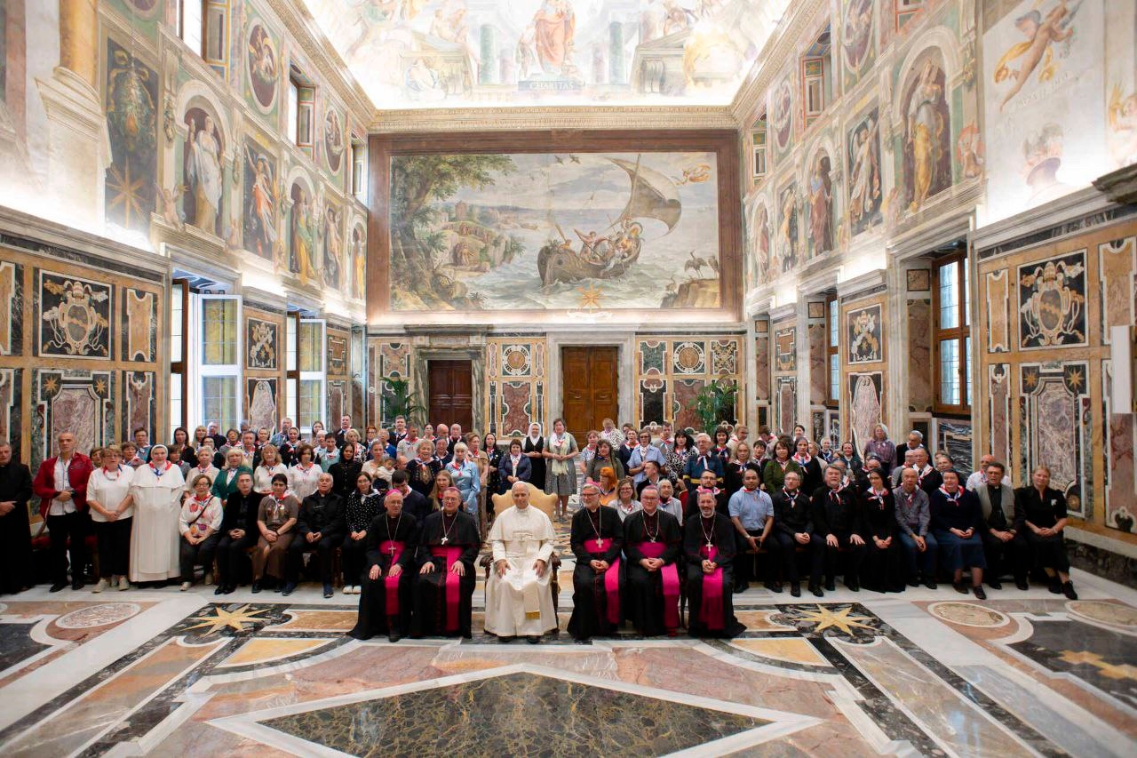 Сердечно приветствую всех вас, прибывших для совершения вашего юбилейного паломничества. Действительно, Святой год, который переживает Католическая Церковь, приглашает к паломничеству, потому что «отправление в путешествие традиционно ассоциируется с поиском смысла жизни» (Булла Spes non confundit, 5). В это время мы видим тысячи людей, идущих по улицам Вечного города, чтобы пройти через Святые врата, остановиться у могил Апостолов и Мучеников и наполнить свои сердца надеждой на многочисленных путях веры, которые пересекают Рим.