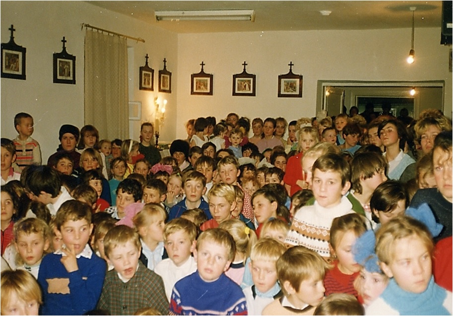Я помню, как сегодня, Рождество, которое я служил здесь в 1990-м году. Наш молитвенный дом – самый обычный дом – был перестроен так, что был сделан большой молитвенный зал, хотя для церкви это был, конечно, маленький зал. И вот в Рождество 320 детей и подростков присутствовало на Святой Мессе 24 декабря 1990 г. Мы хорошо запомнили это число, потому что сёстры приготовили 300 подарочков для детей, и их не хватило. Мы быстро собрали ещё 20 подарков из конфет, фруктов и печенья – что смогли быстро найти.