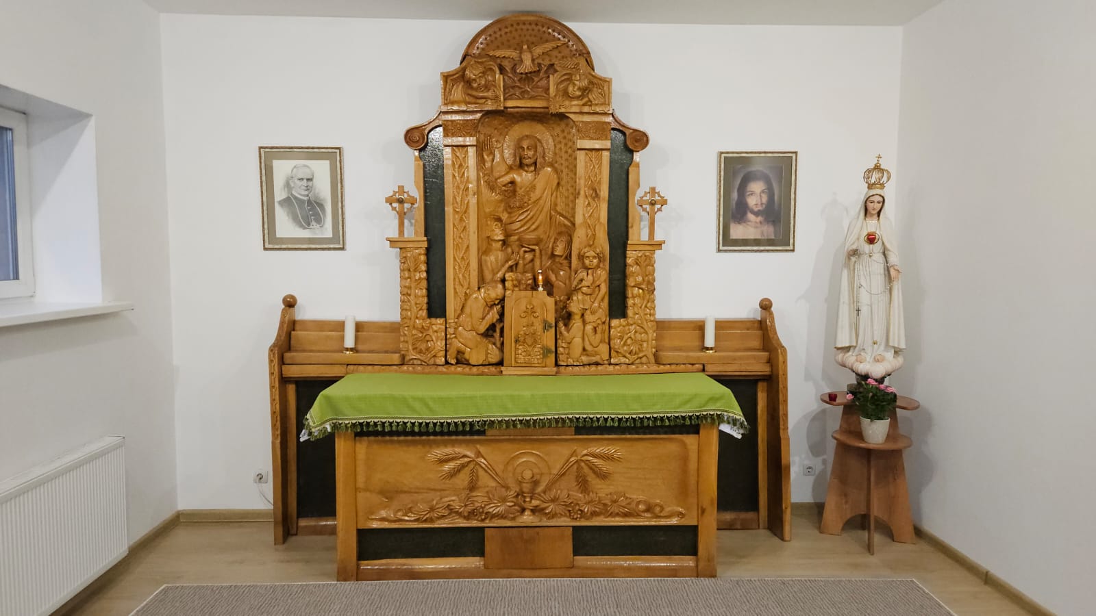 Деревянный алтарь Христа Царя из молитвенного дома в Марксе. Часовня в доме бл. Георгия Матулевича (Матулайтиса), 22.11.2025 г. Фотограф: о. Боско Маршнер.