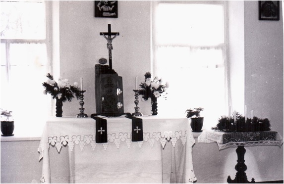 Первый алтарь в молитвенном доме в Марксе в 1986 г. Из архива сестёр Евхаристок.