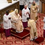 Святейший Отец напомнил, что Церковь стоит на пороге Пасхального триденствия – вершины миссии Христа, где Его страдание, смерть и воскресение становятся сердцем всякого служения. Эта тайна преображает человеческую идентичность, исцеляет раны и восстанавливает единство. Миссия Церкви принадлежит не отдельным людям, а всему Телу Христову: епископы и священники, обновляя свои обещания, служат народу, который сам по себе является миссионерским. Каждый участвует в этом призвании согласно собственному дару, но всегда в общении с другими.