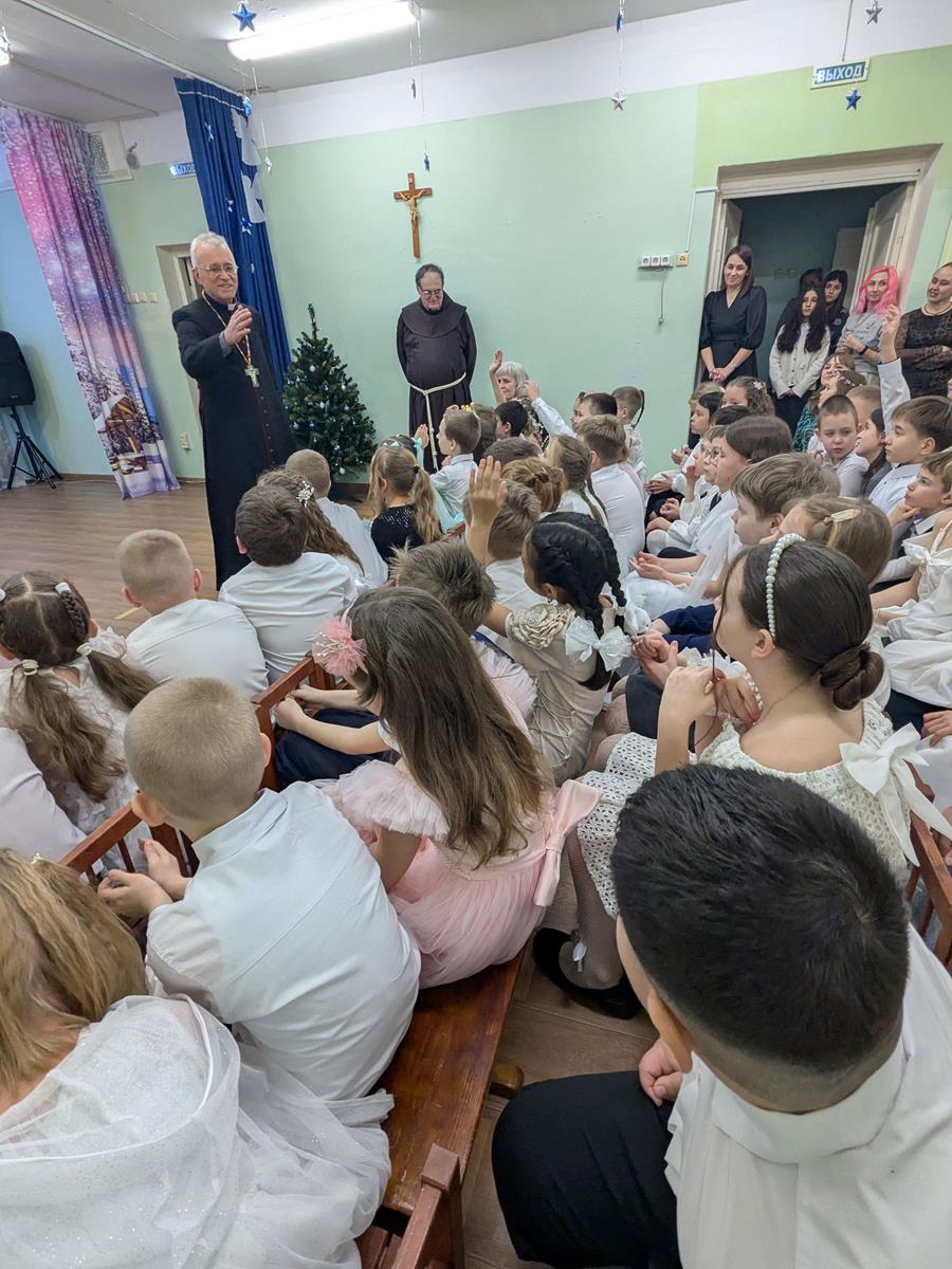 После спектакля Владыка Иосиф ещё раз лично поздравил учеников школы и всех гостей с праздником Рождества. Он сделал особый акцент на чудо и силу детской молитвы: молитвы о мире и о благе всего человечества. «Я хочу пожелать каждому из вас иметь мир в сердце. Мира каждой вашей семье! Ещё хочу пожелать, чтобы был мир у вас в Школе — что почти уже исполнилось, судя по вашему талантливому выступлению. И, конечно, пусть будет мир во всём мире! Всем вам любви, милости Божией в наступающем 2026 году! Христос рождается — славьте Его!»
