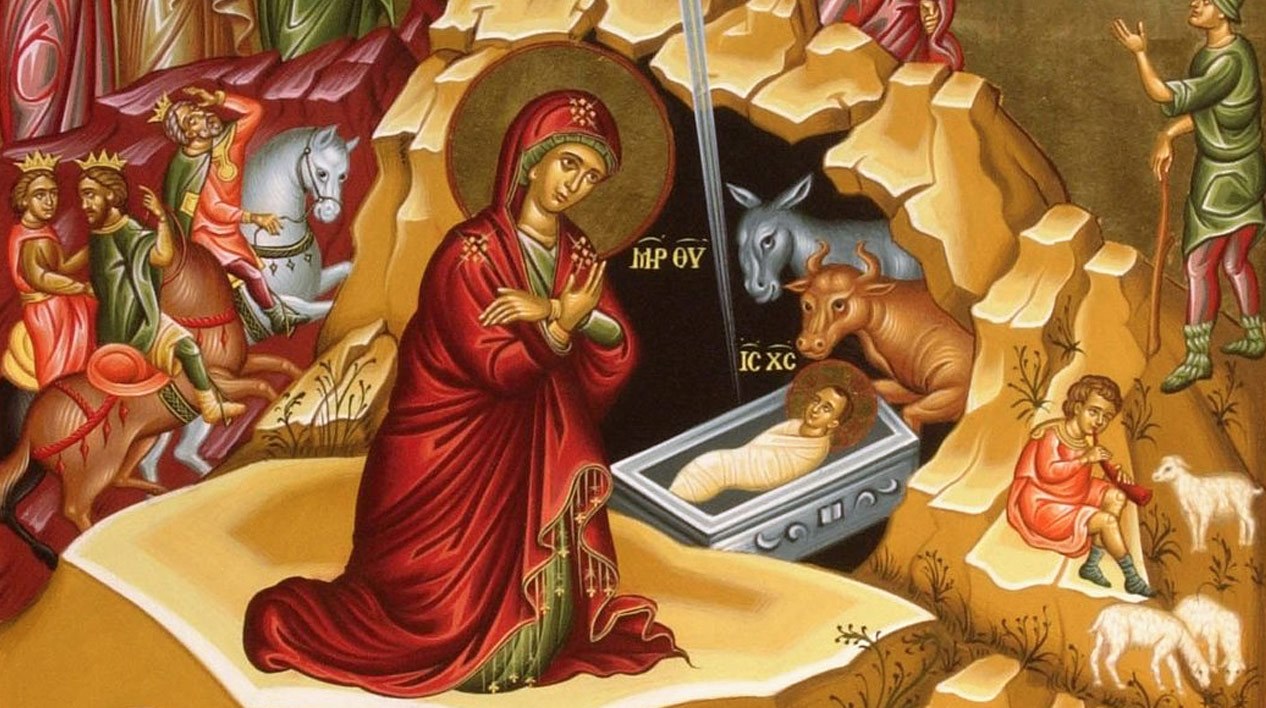 Византийская традиция, празднующая «Рождество во плоти Господа Бога и нашего Спаса Иисуса Христа», сочетает в иконографии и литургических текстах празднование Рождества с Пасхой. Рождественская икона, на которой изображён увитый пеленами и лежащий в яслях Младенец, уже содержит в себе прообраз гробницы, в которую Господь — снова перевязанный пеленами, но на этот раз погребальными, — будет положен в Страстную Пятницу, чтобы восстать из неё во славе на заре пасхального дня. Таким образом, с помощью глубоких и ярких образов литургические тексты передают тайну нашего спасения.
