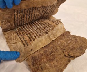 Образцы переплёта и пергамента были взяты на анализ белков и ДНК, чтобы подтвердить их животное происхождение.