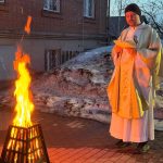 А уже на утро – в самый день Светлого Христова Воскресения — празднование продолжилось процессией со Святыми Дарами, лучистой Евхаристией, традиционным благословением и освящением пасхальной снеди к праздничному столу.