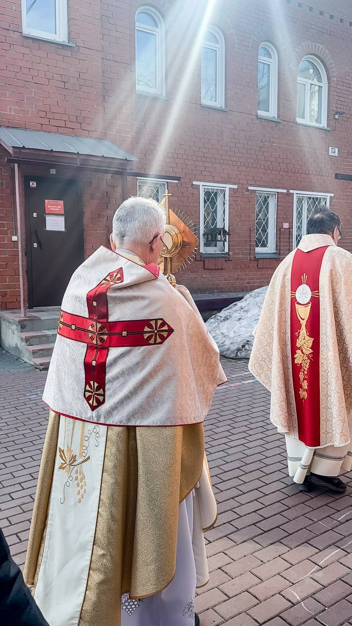 Кстати, лайфхак от сестёр св. Елизаветы: «Если вы не знаете, где в Пасхальное утро найти Владыку Иосифа (ну вдруг вы его ищете 😁) — он всегда в нашем приходе. Традиционный визит и св. Месса под его предстоятельством проходят неизменно в приходе францисканцев».