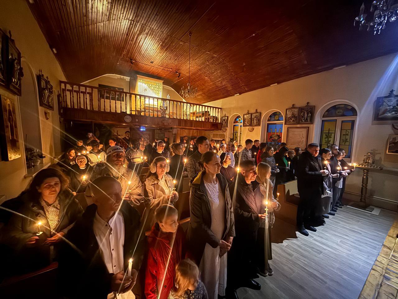 А уже на утро – в самый день Светлого Христова Воскресения — празднование продолжилось процессией со Святыми Дарами, лучистой Евхаристией, традиционным благословением и освящением пасхальной снеди к праздничному столу.