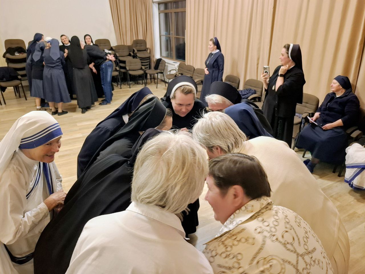 В последний день встречи сёстры соблюли еще одну важную традицию и посетили насельниц обители Воскресения Христова из затворнического Ордена кармилиток: таким образом монашествующие активного апостольского служения и монахини, посвятившие себя исключительно молитве и созерцанию, из года в год встречаются для обмена подарками, приветствиями и свидетельствами о происшедшем в их жизни.