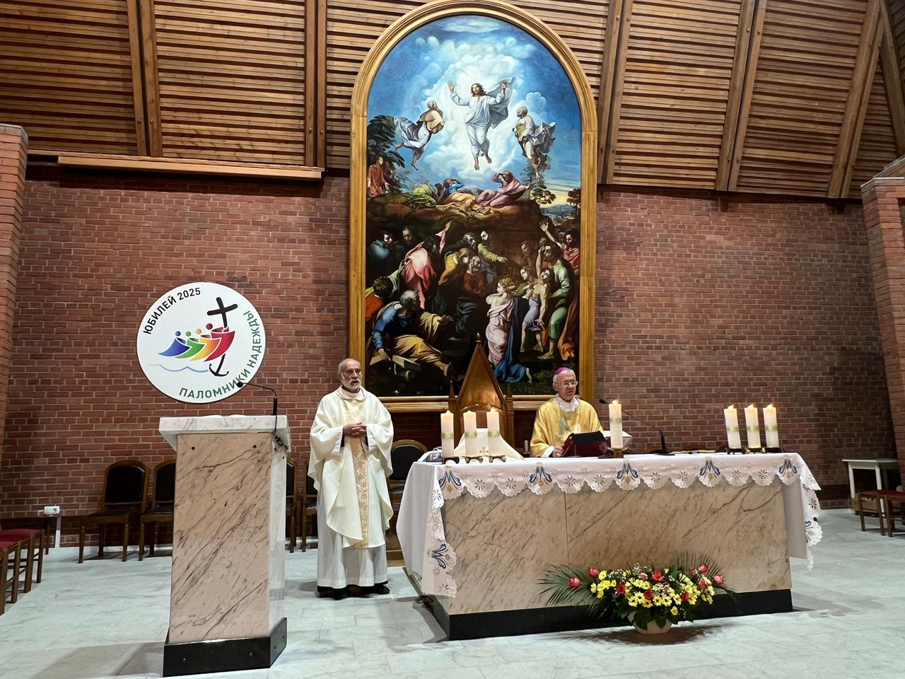 В начале богослужения Преосвященный Иосиф поделился с верующими некоторыми подробностями о своей последней поездки в Рим в качестве участника Всероссийского паломничества в Юбилейный год надежды.