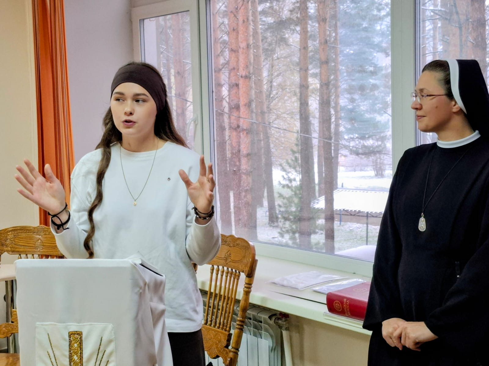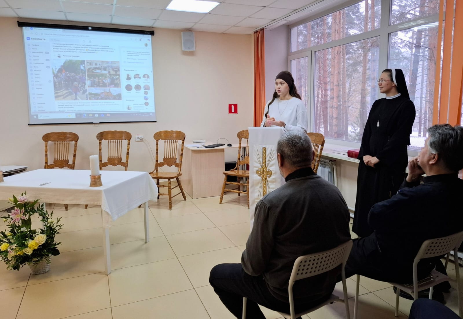 Сестра Эмилия Лаврехина CSSE показала участникам страницы в соцсетях, посвящённые молодёжи Преображенской епархии. Затем она сделала общий обзор мероприятий, посвященных католической молодёжи за прошедший год в целом по всей России. Более подробно шла речь о нашей Епархиальной встрече молодежи в мае в г. Челябинске. Участники этой встречи выступили со свидетельствами.