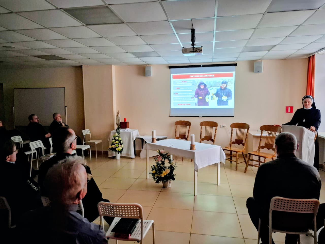 Последний, третий день конференции начался с мультимедийной презентации директора епархиального Каритас сестры Дарьи Рассказовой CSSE о проделанной работе за 2024 год.