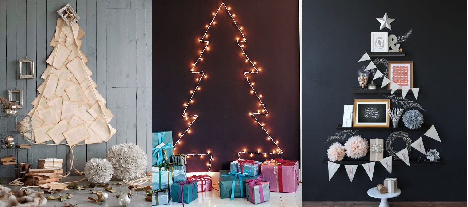 Стены украшаем с помощью декоративных елок из дощечек, фотографий, гирлянд и мишуры.