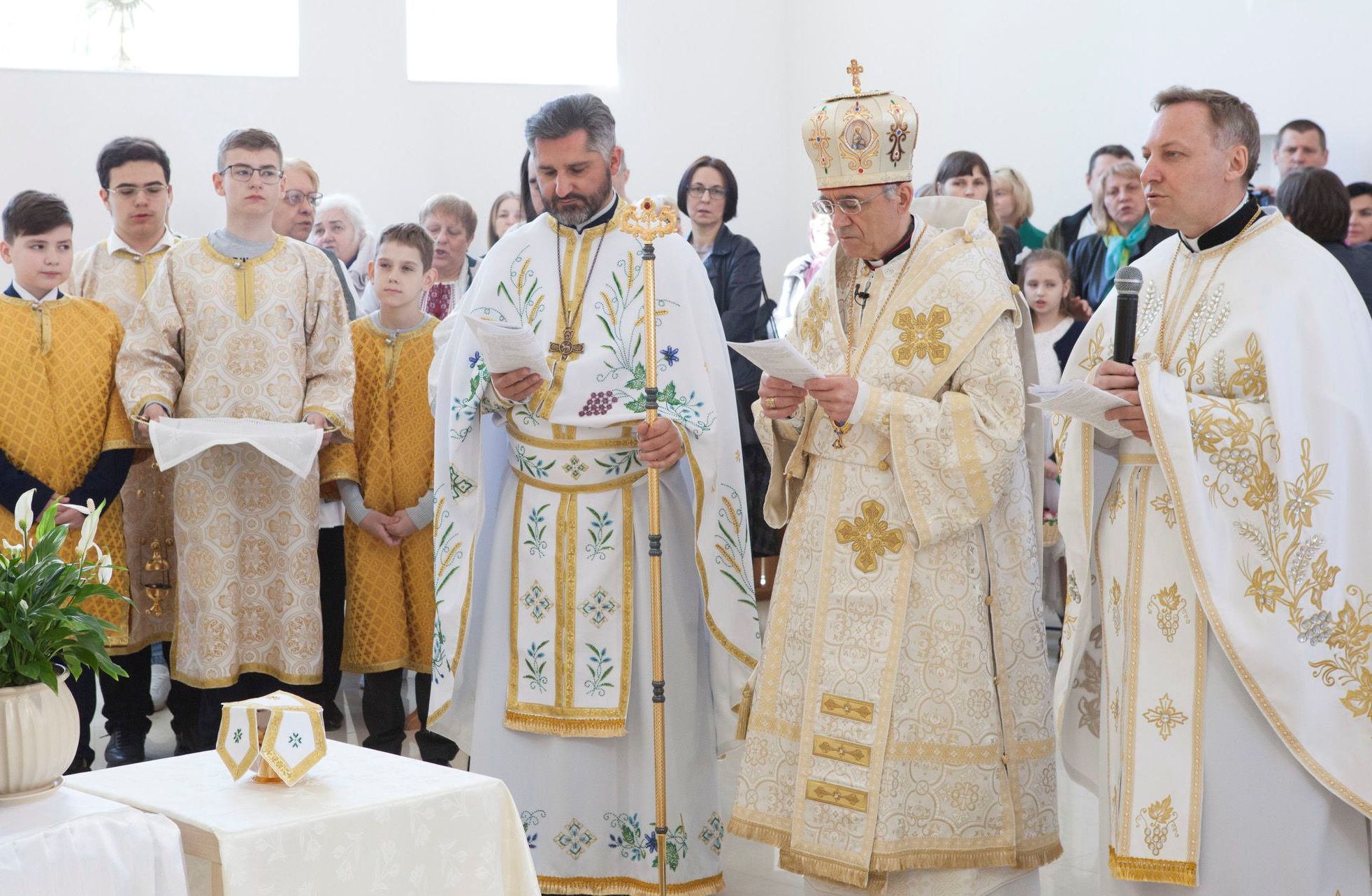 Здесь я хочу отметить очень интересный момент, а именно то, что у нас в Преображенской епархии настолько близкое взаимосуществование священников разных обрядов – восточного и западного. Все-таки это уникально, несмотря на провозглашаемое часто, что мы все «одна Церковь» и так далее. Но вряд ли найдется ещё такая епархия, где всё настолько гармонично и по-добрососедски: что и в латинских приходах католики византийского обряда свободно собираются, и наоборот. И никто при этом себя не чувствует обделенным или неполноценным. Например, присутствовавший на этом освящении отец Антон Гсель, латинский священник из другого деканата, один из старейших священников нашей епархии — он приехал как мой старый друг, откликнулся на моё приглашение, приехал с радостью и оказался очень-очень полезным. И ведь было видно, что он сам с большим удовольствием участвовал во всём этом восточном богослужении.