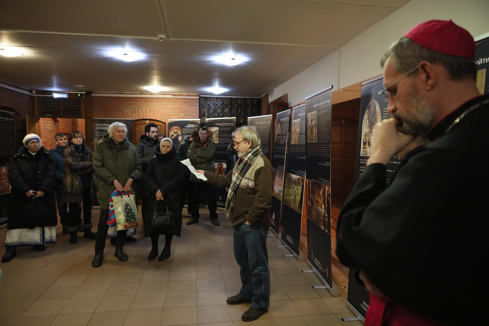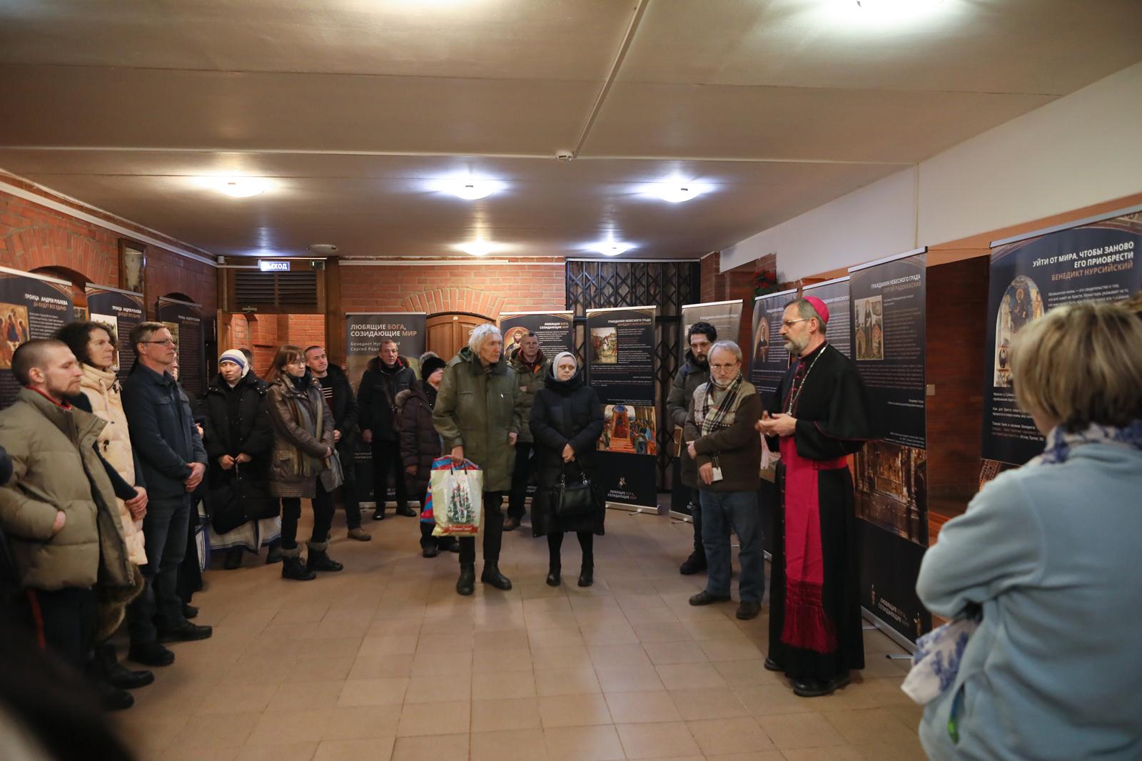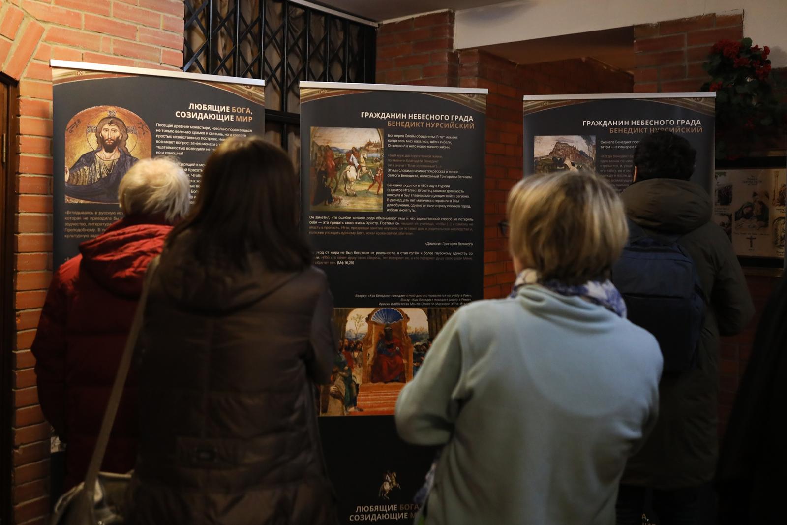 А затем все участники встречи были приглашены Культурным центром «Иниго» на открытие тематической выставки «Любящие Бога, созидающие мир», посвященной святым Бенедикту Нурсийскому и Сергию Радонежскому. Это та же самая выставка, которая осенью 2025 года проходила в Москве на территории Культурного центра «Покровские ворота» в рамках ежегодного христианского фестиваля «Место встречи». Её целью стал рассказ не только о жизни этих святых, но и о духовном, культурном и историческом контексте, в котором формировались их личности и их миссия.