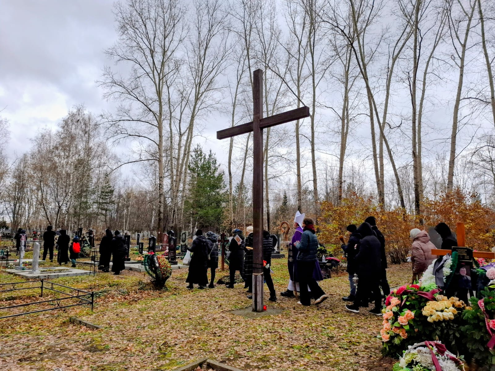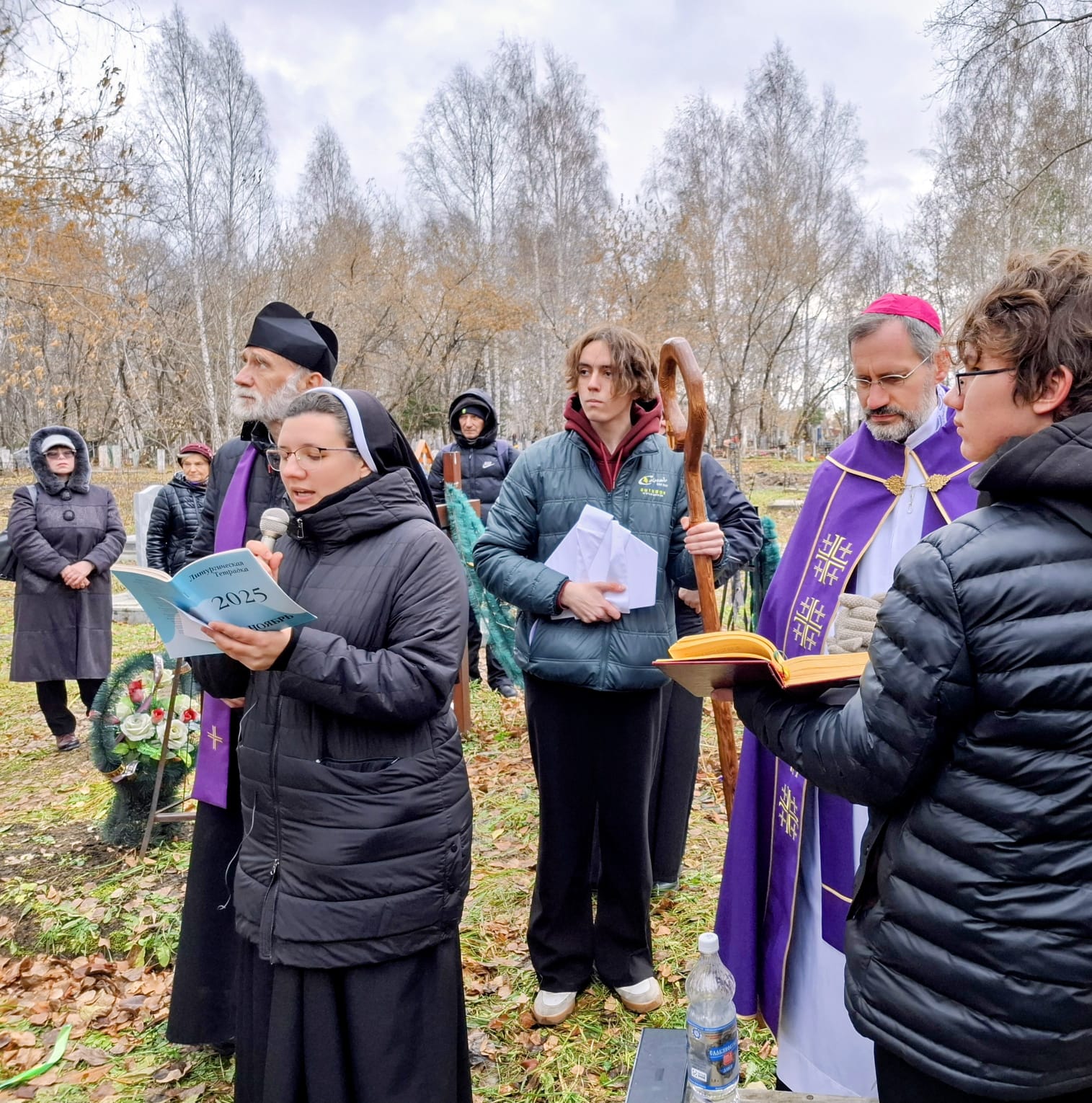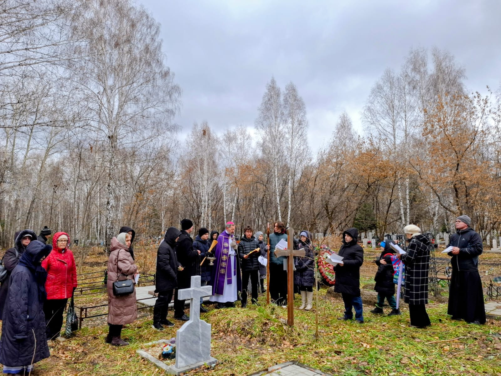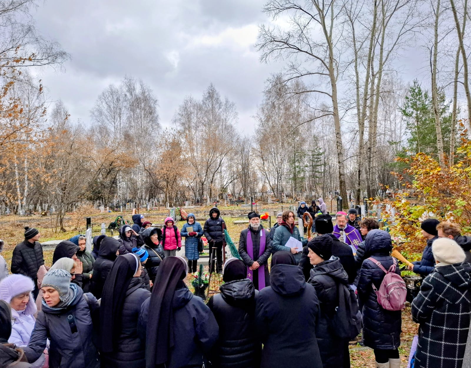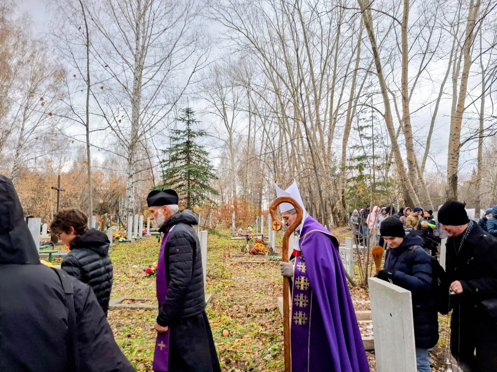 В День поминовения всех усопших принято не только совершать Заупокойные Мессы в храмах, но также и молиться в местах захоронений, на кладбищах. Поэтому после Божественной Литургии духовенство и прихожане Кафедрального собора Преображения Господня, к которым присоединились верные других католических общин Новосибирска и все желающие, отправились на католический участок Гусинобродского кладбища столицы Сибири, где викарным епископом Штефаном Липке было также совершено Поминальное богослужение, включавшее особую Процессию за усопших с молитвенными стояниями. А затем все могилы был окроплены святой водой.