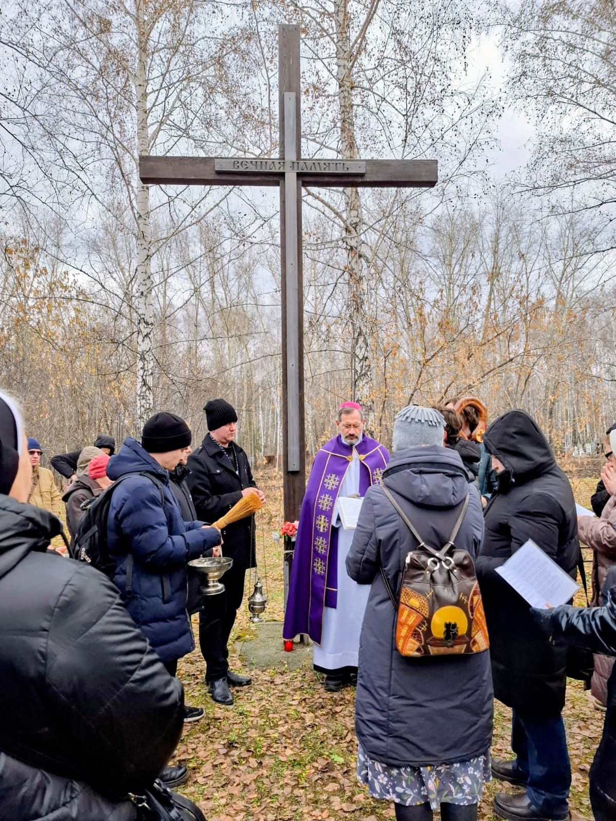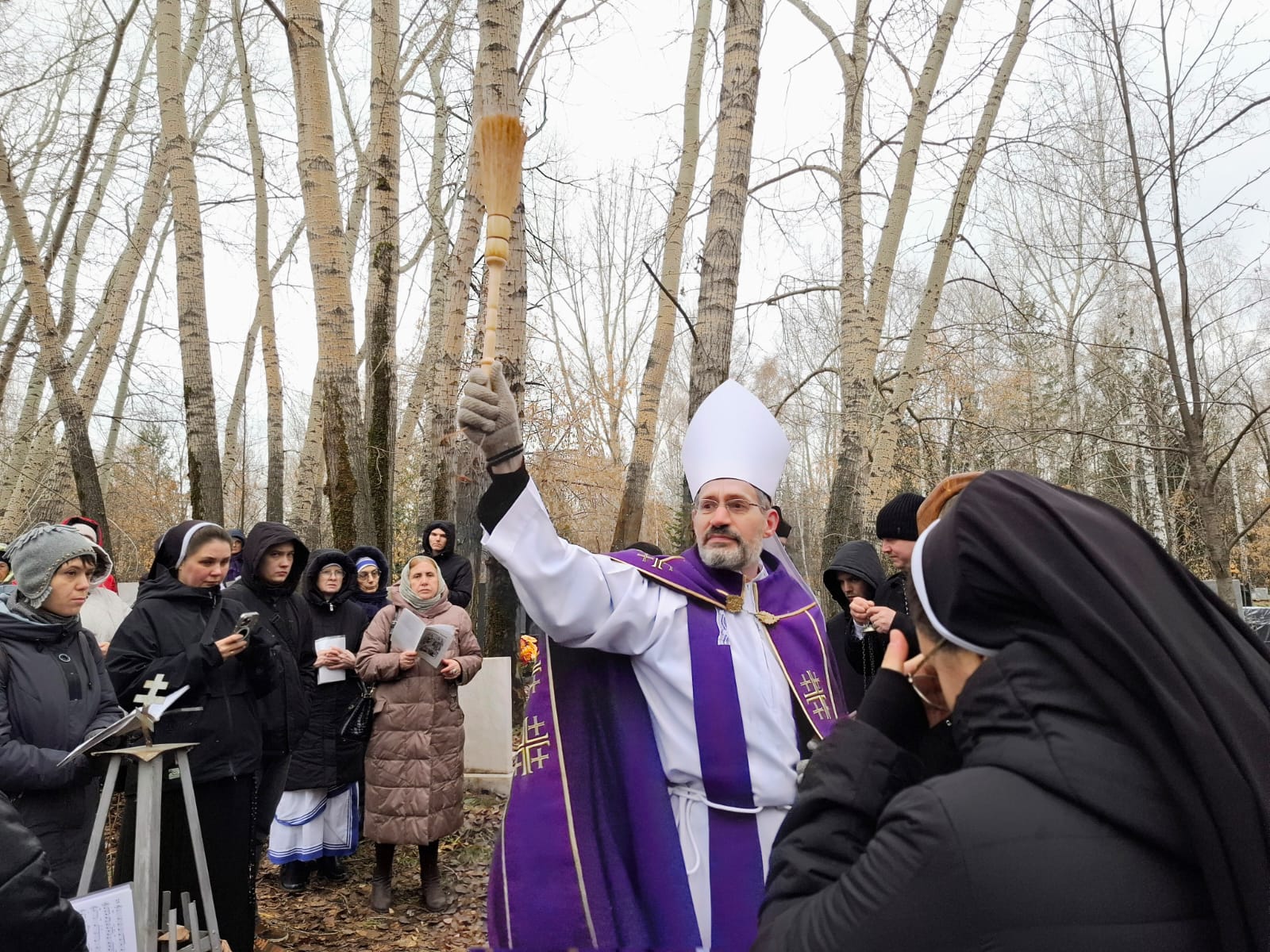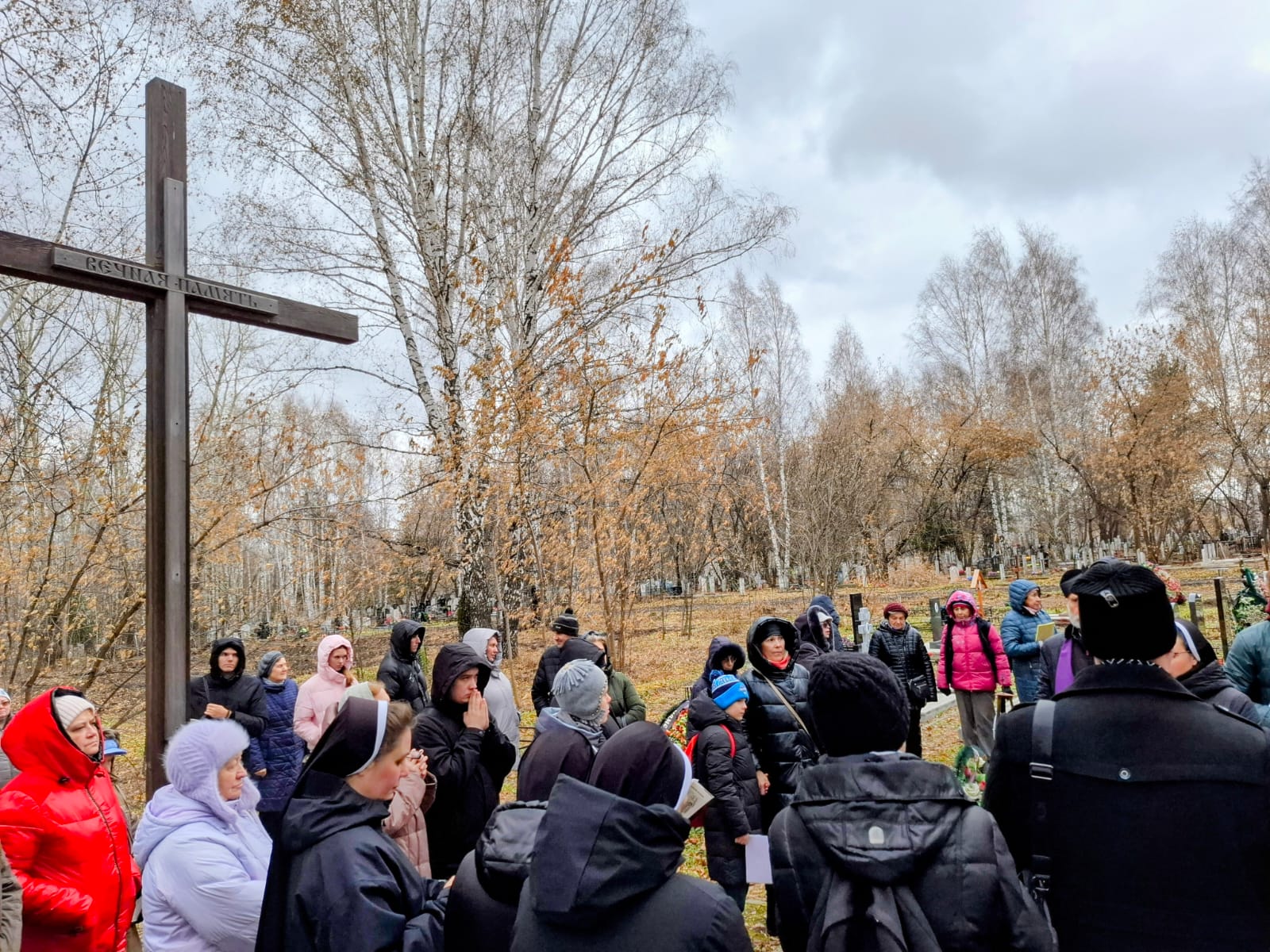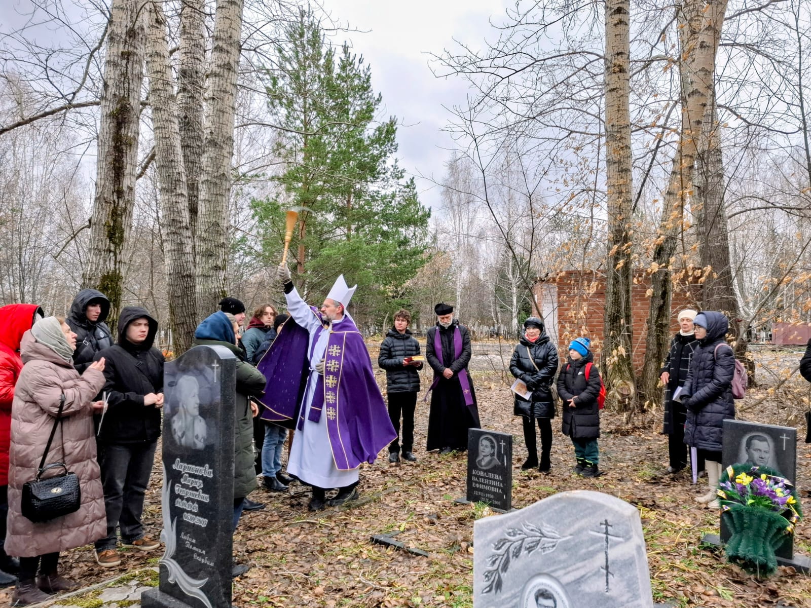В День поминовения всех усопших принято не только совершать Заупокойные Мессы в храмах, но также и молиться в местах захоронений, на кладбищах. Поэтому после Божественной Литургии духовенство и прихожане Кафедрального собора Преображения Господня, к которым присоединились верные других католических общин Новосибирска и все желающие, отправились на католический участок Гусинобродского кладбища столицы Сибири, где викарным епископом Штефаном Липке было также совершено Поминальное богослужение, включавшее особую Процессию за усопших с молитвенными стояниями. А затем все могилы был окроплены святой водой.