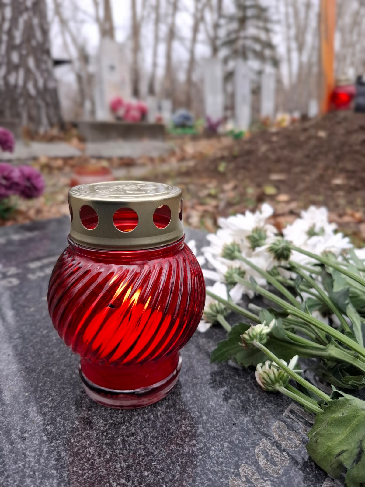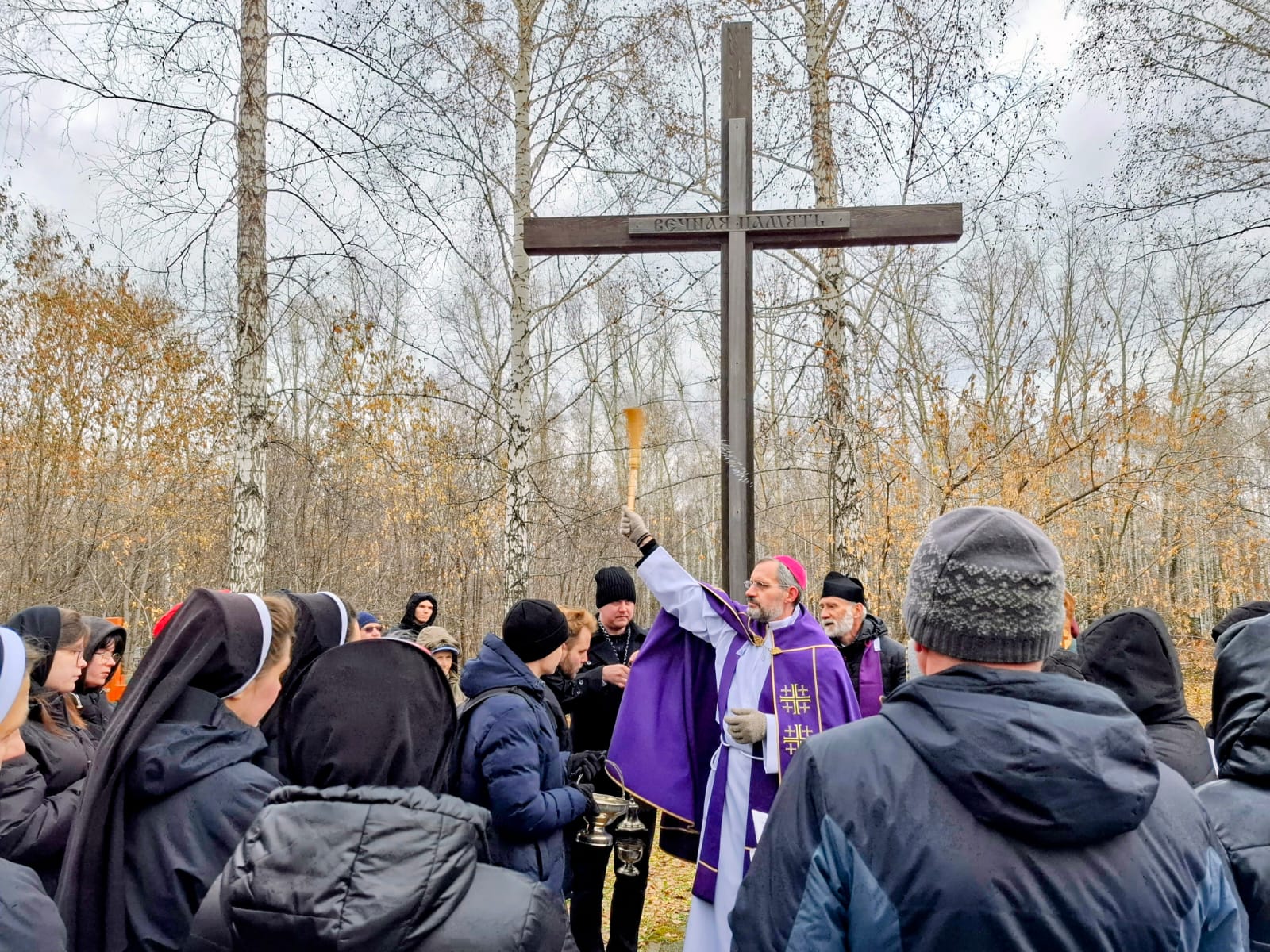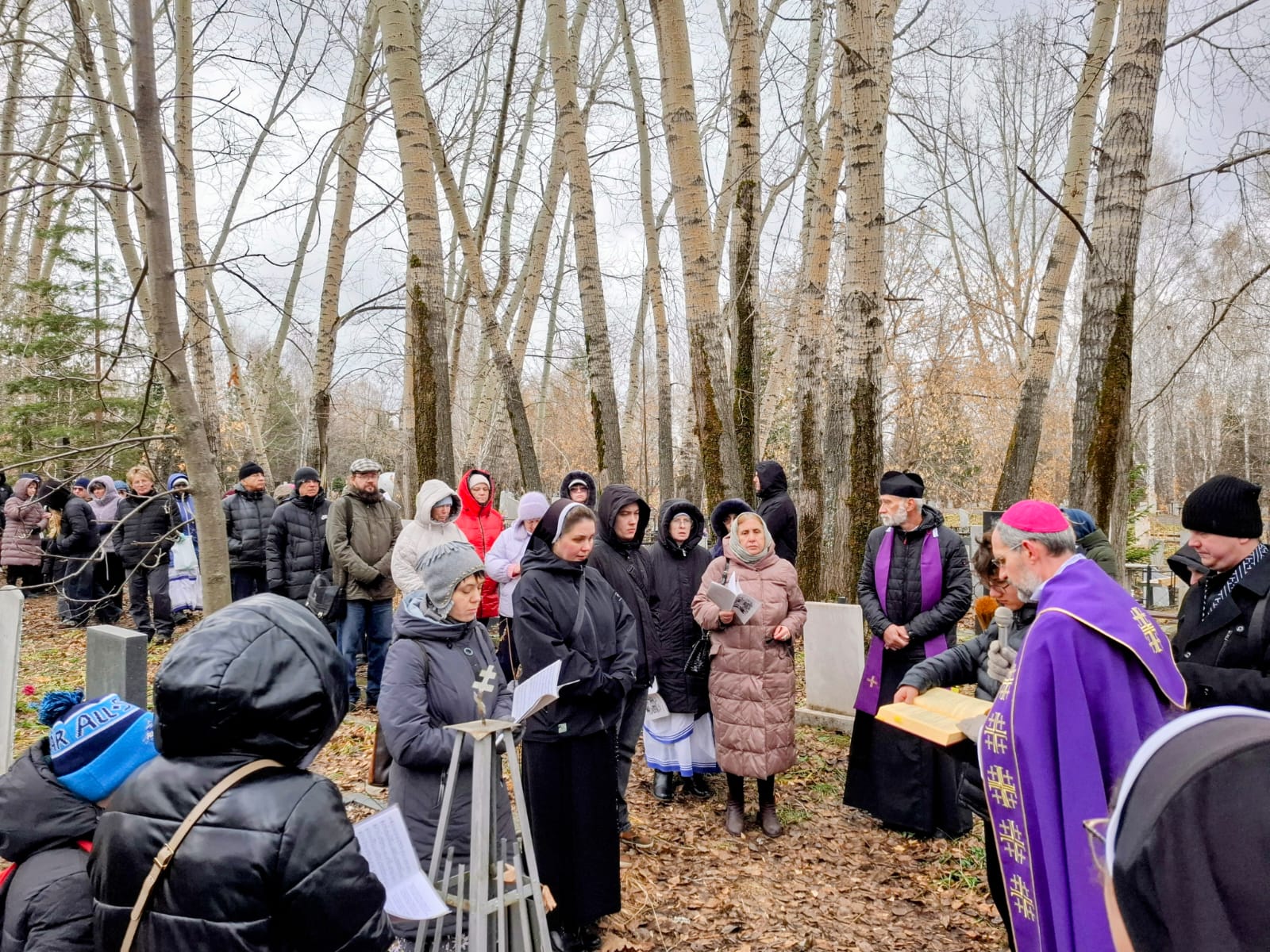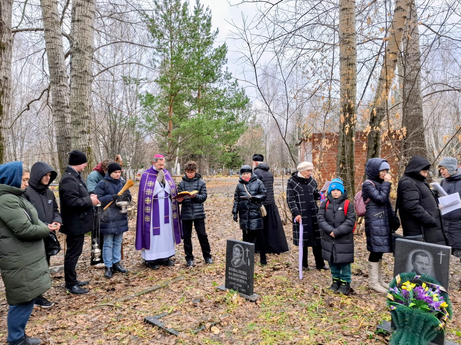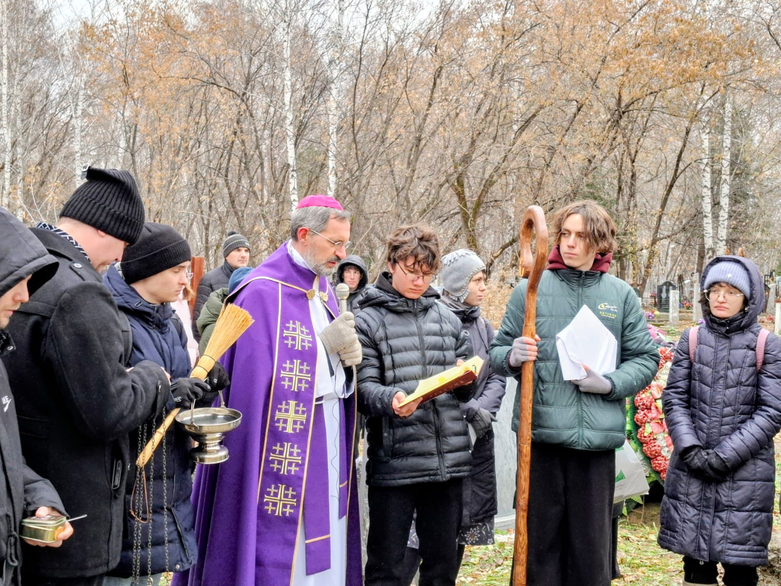 В День поминовения всех усопших принято не только совершать Заупокойные Мессы в храмах, но также и молиться в местах захоронений, на кладбищах. Поэтому после Божественной Литургии духовенство и прихожане Кафедрального собора Преображения Господня, к которым присоединились верные других католических общин Новосибирска и все желающие, отправились на католический участок Гусинобродского кладбища столицы Сибири, где викарным епископом Штефаном Липке было также совершено Поминальное богослужение, включавшее особую Процессию за усопших с молитвенными стояниями. А затем все могилы был окроплены святой водой.