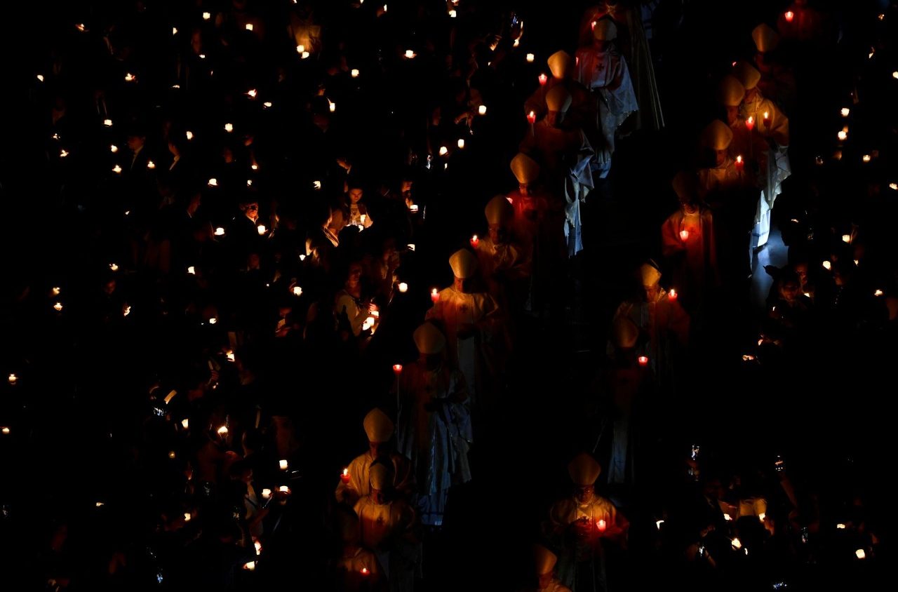 В начале богослужения прозвучал древний пасхальный гимн, возвещающий силу воскресшего Христа. Господь рассеивает мрак злобы, изгоняет вражду, утверждает согласие и мир. Святейший Отец напомнил, что это пасхальное богослужение – «матерь всех бдений», древнейшее торжество христианской традиции, в котором Церковь вновь переживает победу жизни над смертью. После дней Страстей, в которых Христос явился как «муж скорбей», ночь Воскресения открывает полноту милости и великодушия Бога.
