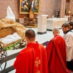 «Господи Иисусе Христе, жизнь и воскресение наше, подними нас из гроба грехов, посети и наполни нас духовной силой. Дай нам, укрепляясь в вере, надежде и любви, вместе со всеми святыми постичь величие любви Твоей. Ты так возлюбил нас, что ради нас претерпел смерть на Кресте, чтобы каждый верующий в Тебя не погиб, но имел жизнь вечную. Ты живёшь и царствуешь во веки веков. Аминь».