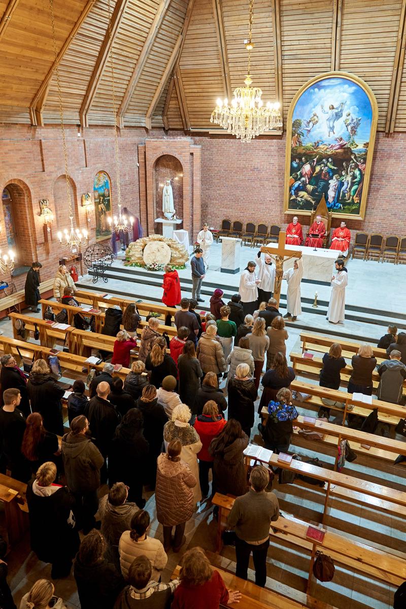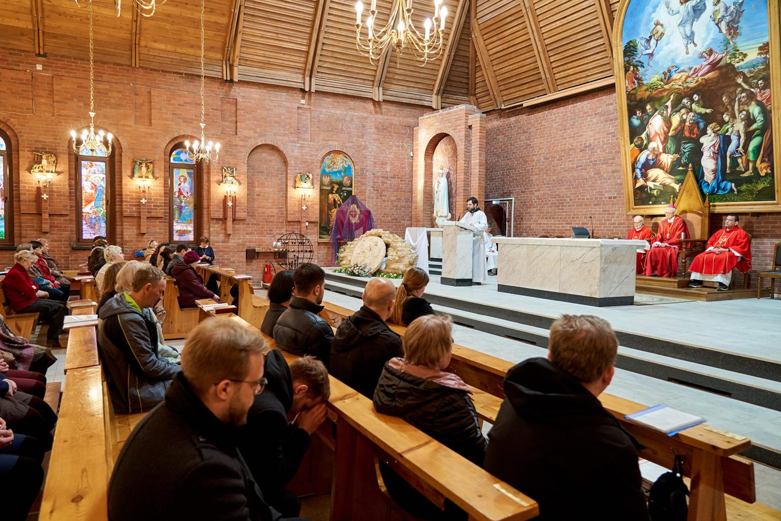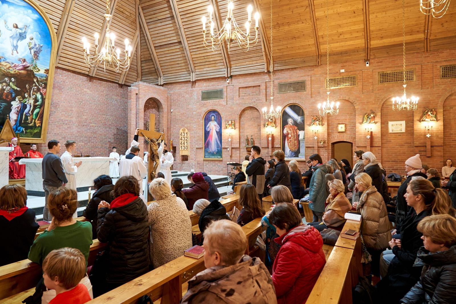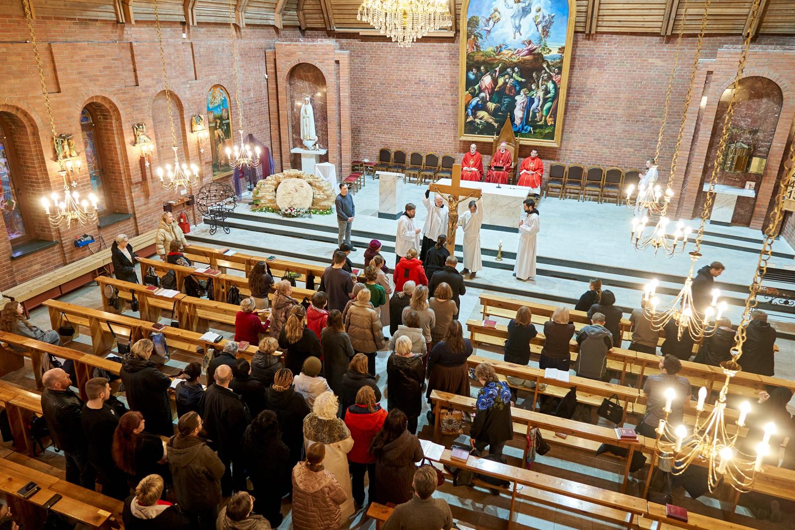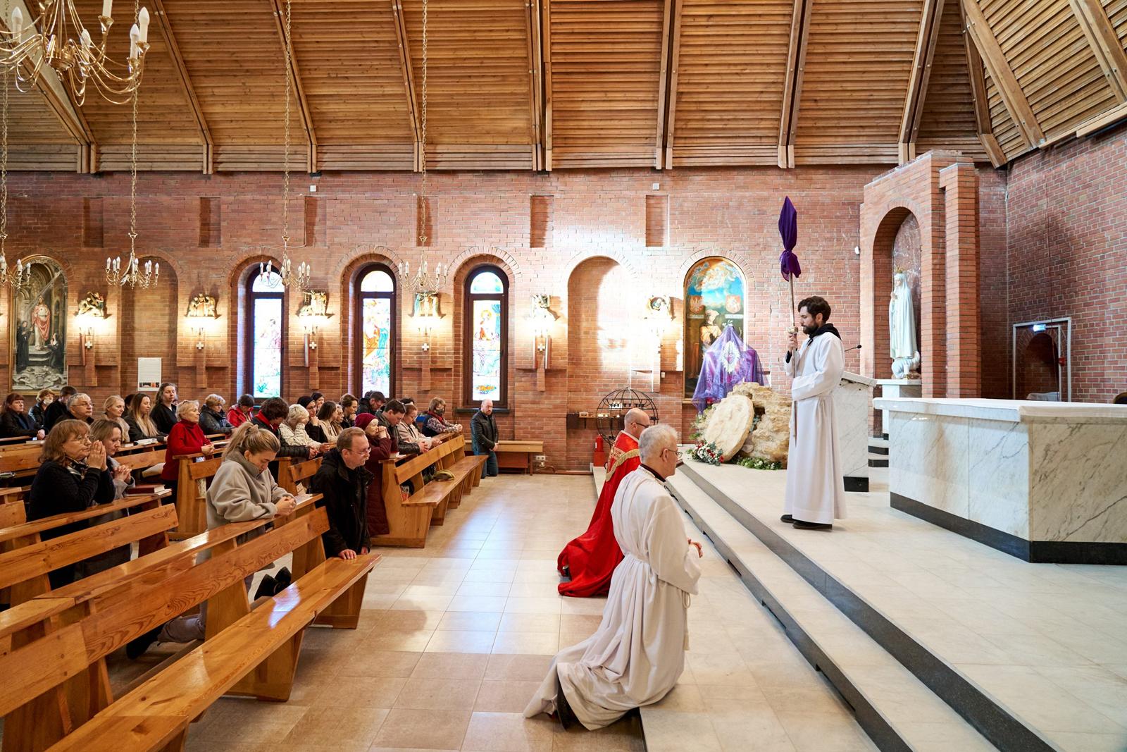 «Господи Иисусе Христе, жизнь и воскресение наше, подними нас из гроба грехов, посети и наполни нас духовной силой. Дай нам, укрепляясь в вере, надежде и любви, вместе со всеми святыми постичь величие любви Твоей. Ты так возлюбил нас, что ради нас претерпел смерть на Кресте, чтобы каждый верующий в Тебя не погиб, но имел жизнь вечную. Ты живёшь и царствуешь во веки веков. Аминь».