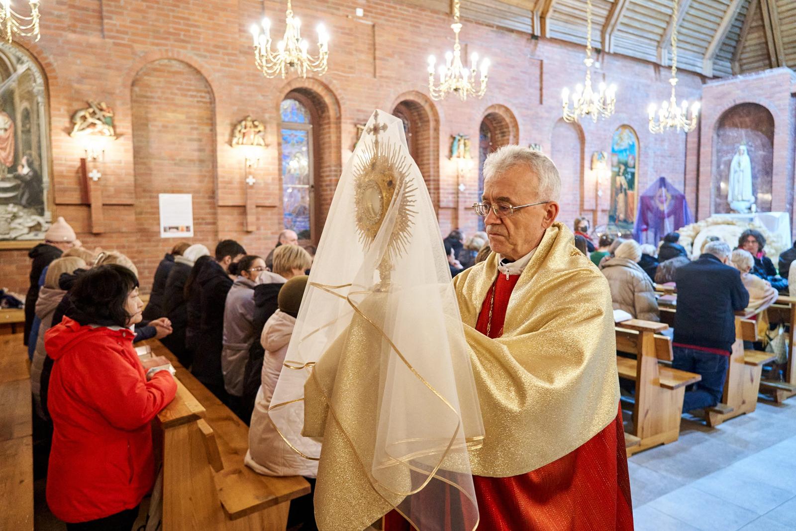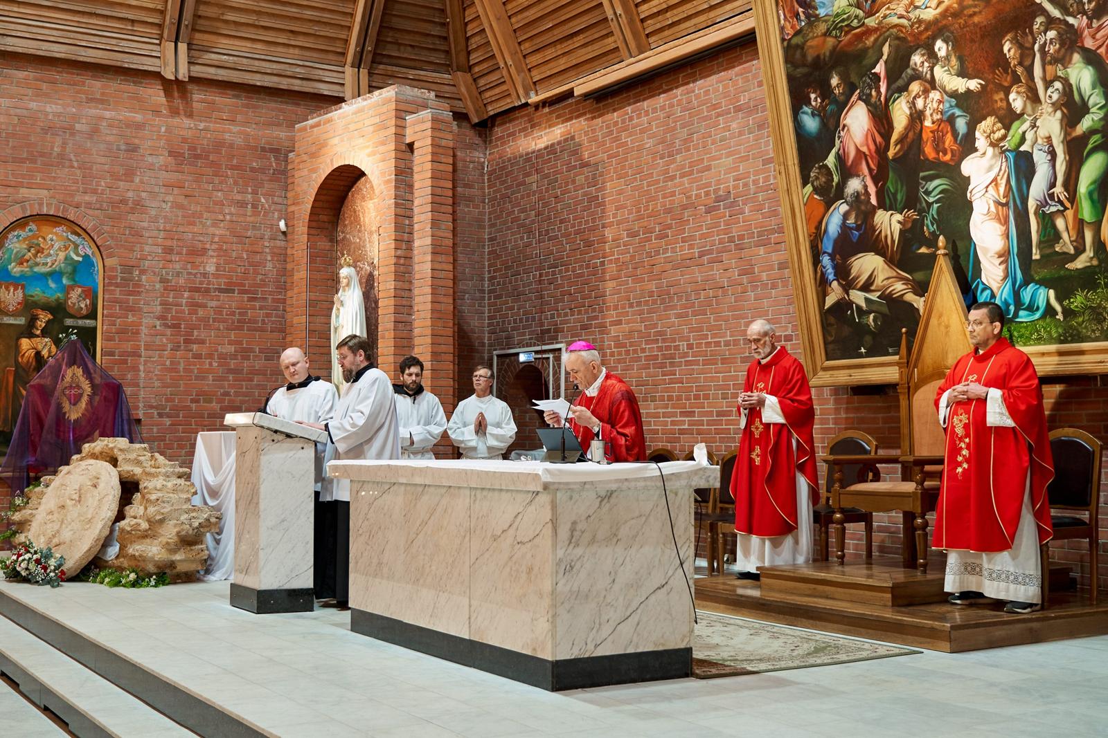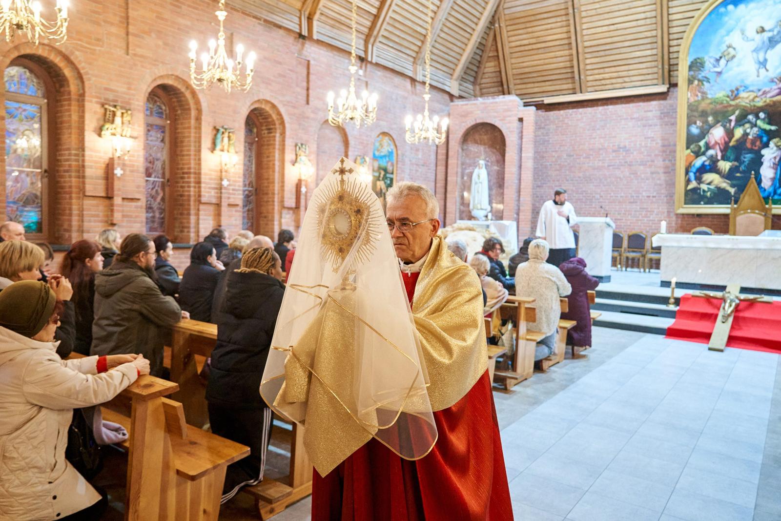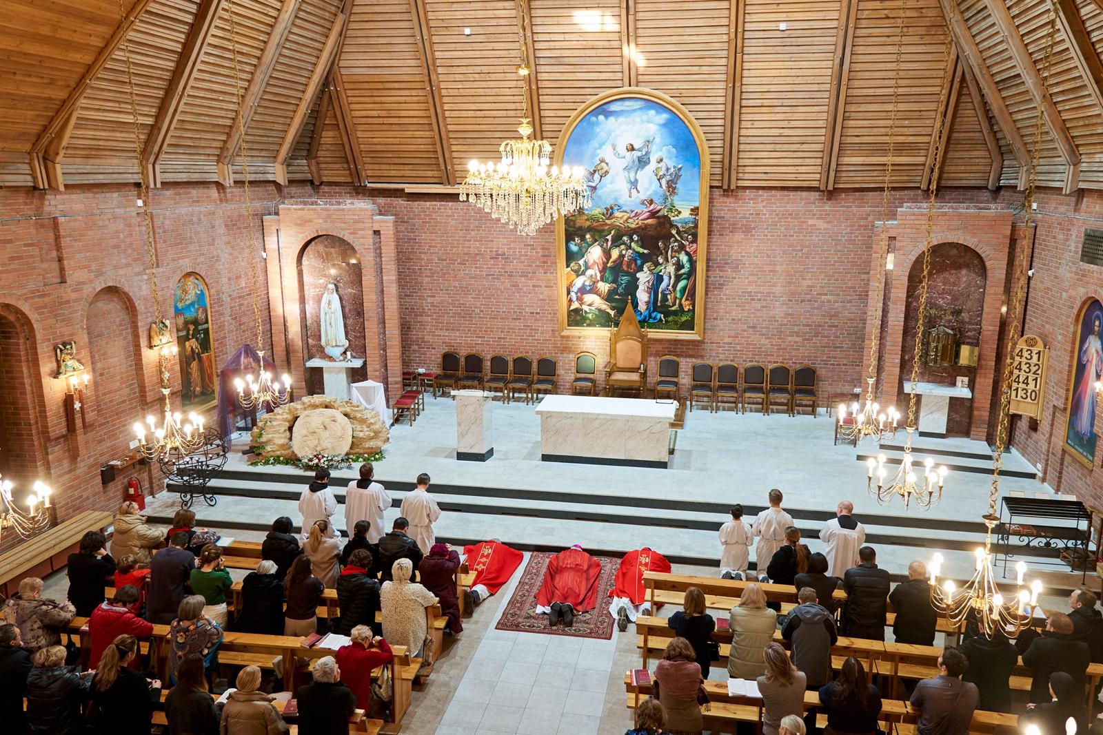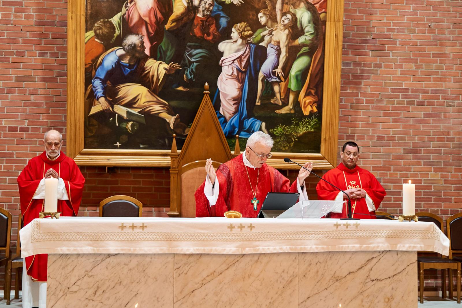 «Господи Иисусе Христе, жизнь и воскресение наше, подними нас из гроба грехов, посети и наполни нас духовной силой. Дай нам, укрепляясь в вере, надежде и любви, вместе со всеми святыми постичь величие любви Твоей. Ты так возлюбил нас, что ради нас претерпел смерть на Кресте, чтобы каждый верующий в Тебя не погиб, но имел жизнь вечную. Ты живёшь и царствуешь во веки веков. Аминь».